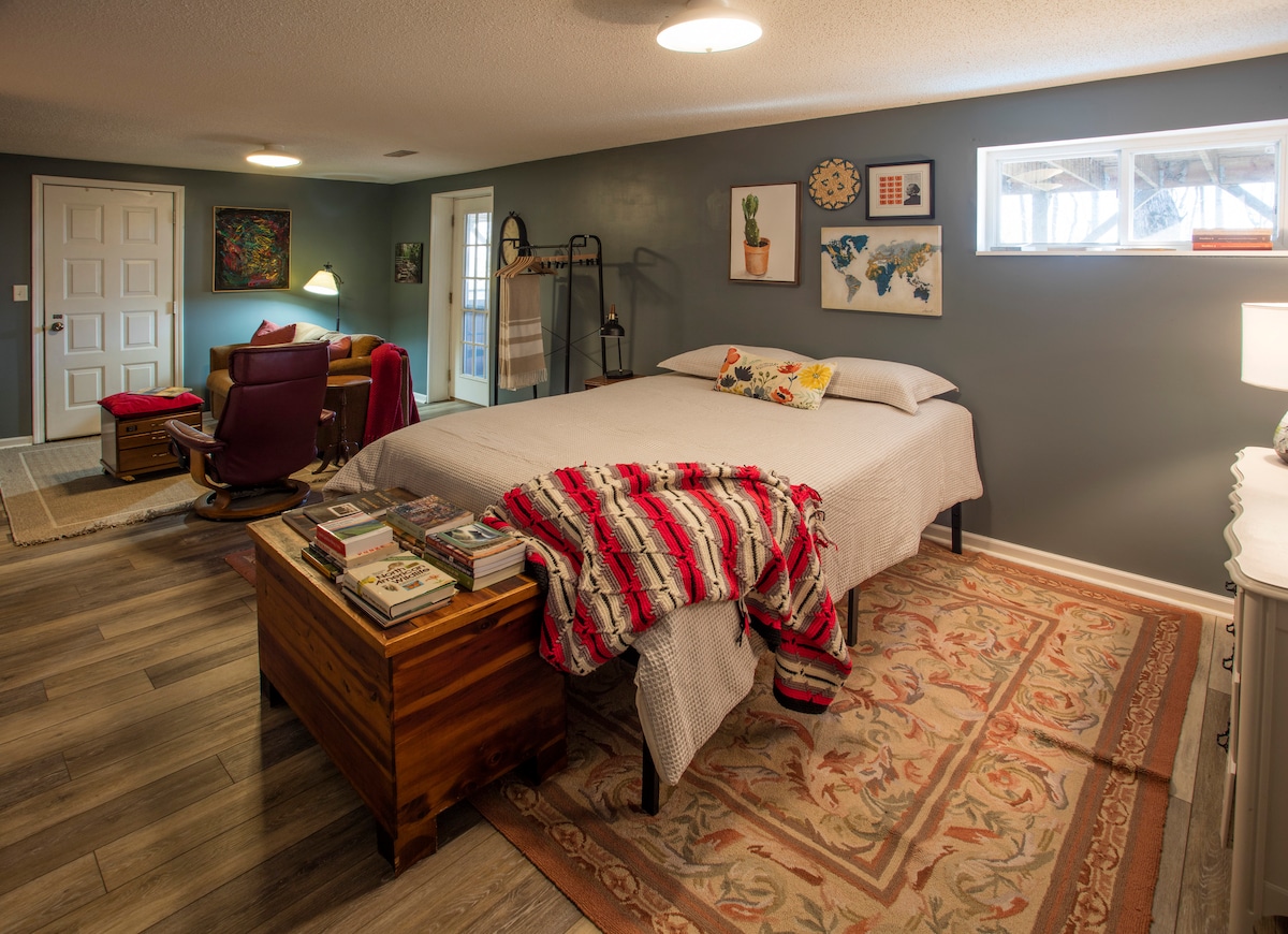 Nestled equally between Asheville & Hendersonville, this studio apartment is minutes from the Asheville Airport, WNC Ag. Center & Sierra Nevada Brewery. Explore what WNC has to offer from this centrally located spot. The top floor is the Airbnb, lower level is a private yoga studio. There are chickens & dogs on the surrounding property. See white noise options in additional notes. No pets allowed.