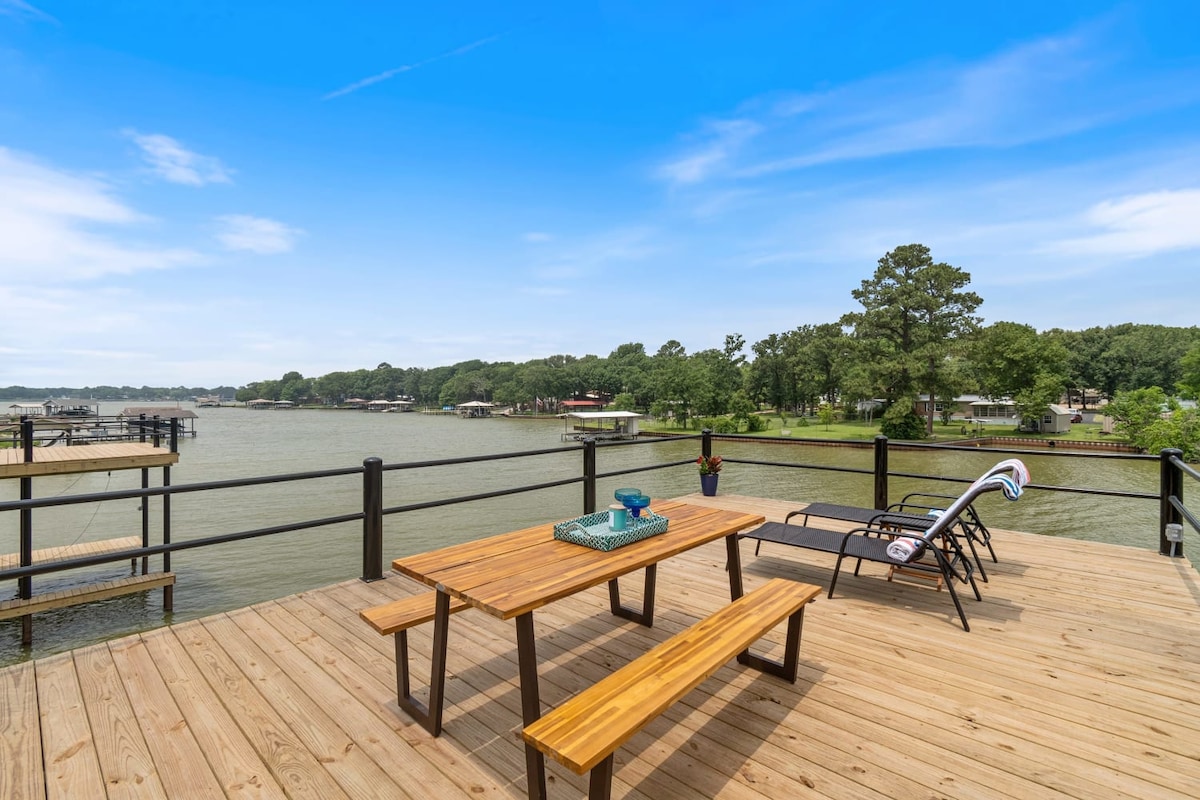 Come make memories and soak in the lake life. 4 bedrooms, 2.5 baths. The large deck is ideal for grilling and enjoying a meal outside with friends and family, while the large living room is perfect for games and movie night. There is no better place in Texas to soak in a gorgeous sunset than the private two story dock of this home. Within walking distance of a golf course and situated in the quiet upscale community of Star Harbor, it is the perfect place to unwind.