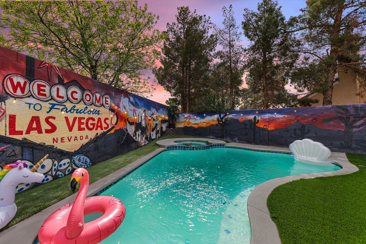 靠近赌城大道的豪华房源!热水浴缸/加热泳池/游戏室!