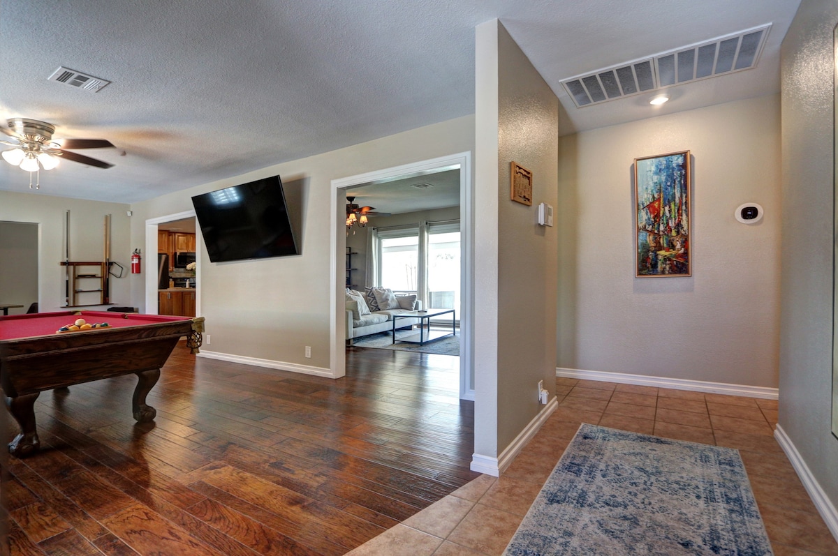 Welcome to the ultimate family-friendly retreat! Whether you are a wolf pack of close friends, a beautifully blended family, or just a group looking for a cozy getaway, this is the perfect home for creating unforgettable memories. Make yourself at home in the best FAMILY VIBE spot in the city! ✔ 4 Beds + One bed and bath downstairs ✔ Pool, Golf, Arcades..etc ✔ High-Speed Wi-Fi ✔ Free Parking ✔ The most family/Children Friendly home in the city! (See our reviews :) Essentials at no add.charge!