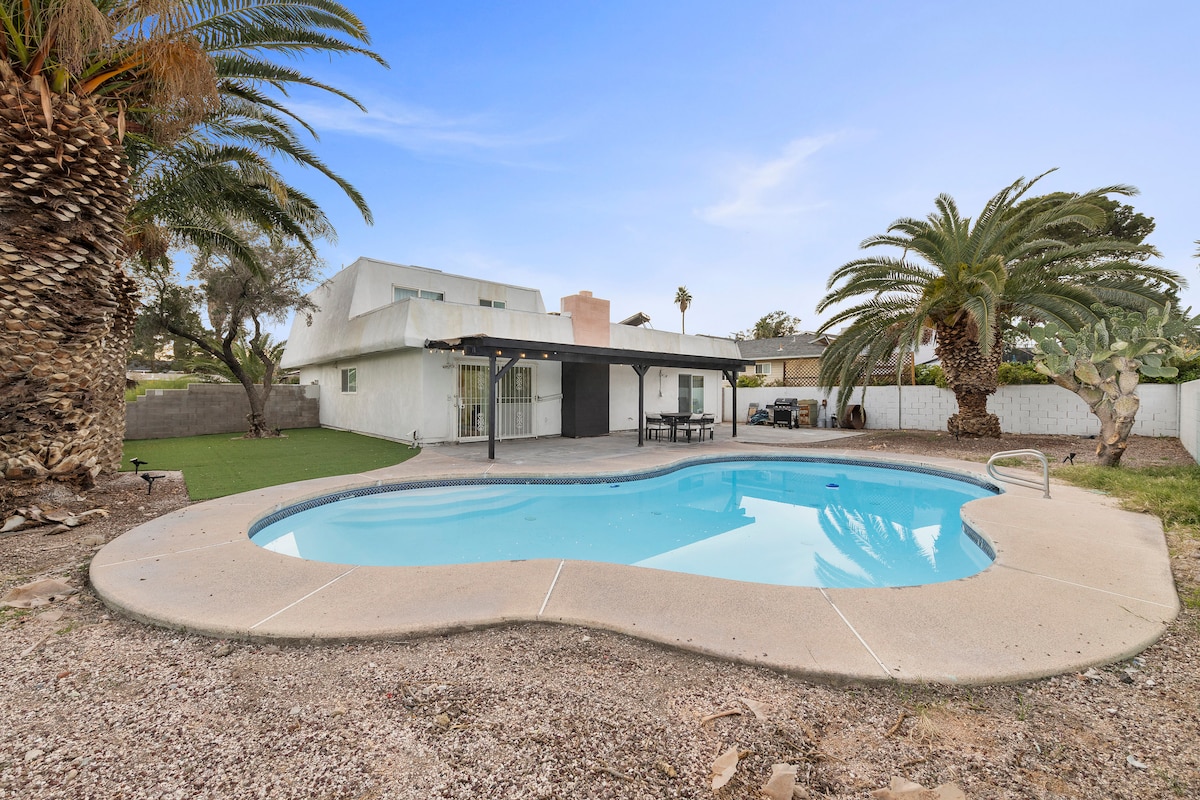 漂亮的 5 卧 3 卫房屋,带泳池,距离 Strip 10 分钟路程