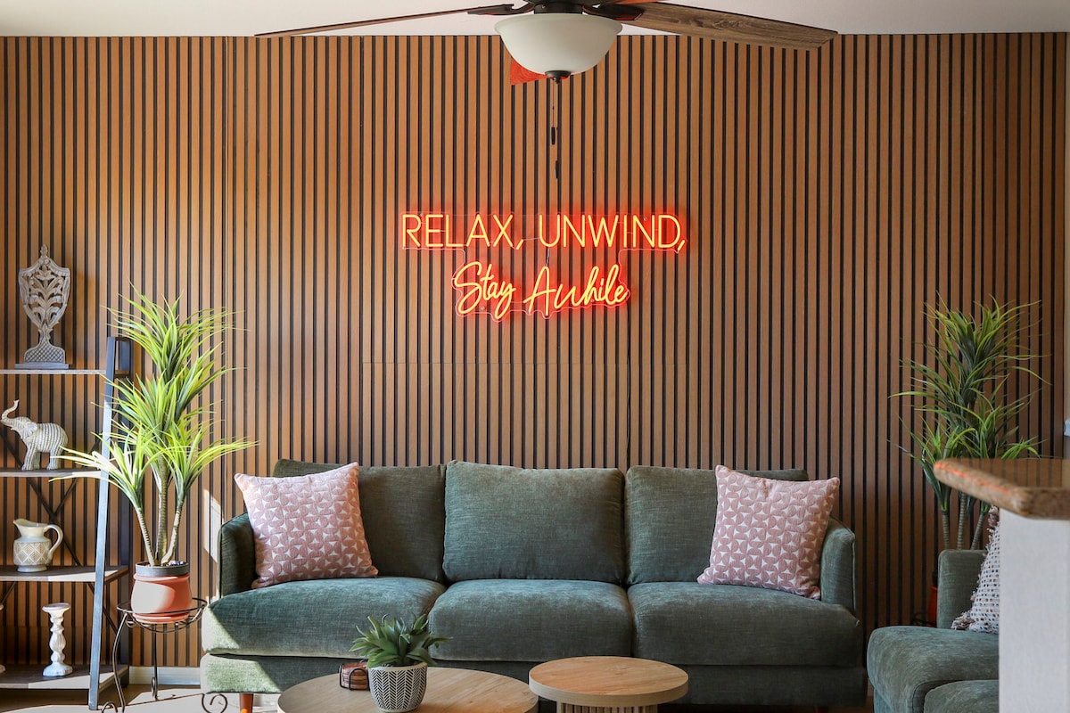 Enchantment awaits you at the Tropical Trip Zone, a unique guest suite, only 20 minutes from The Strip. Delight in swaying palm plants, a tropical-inspired book nook, and a mystical nighttime ambiance. Enjoy a private entrance and access to your own outdoor patio and garden to sunbathe in the Vegas sun. Queen bed, queen pullout couch, kitchenette, microwave, mini fridge, and small hammock chair for hanging out. We gladly accept small dogs so your pup won't miss out on belly rubs--see House Rules