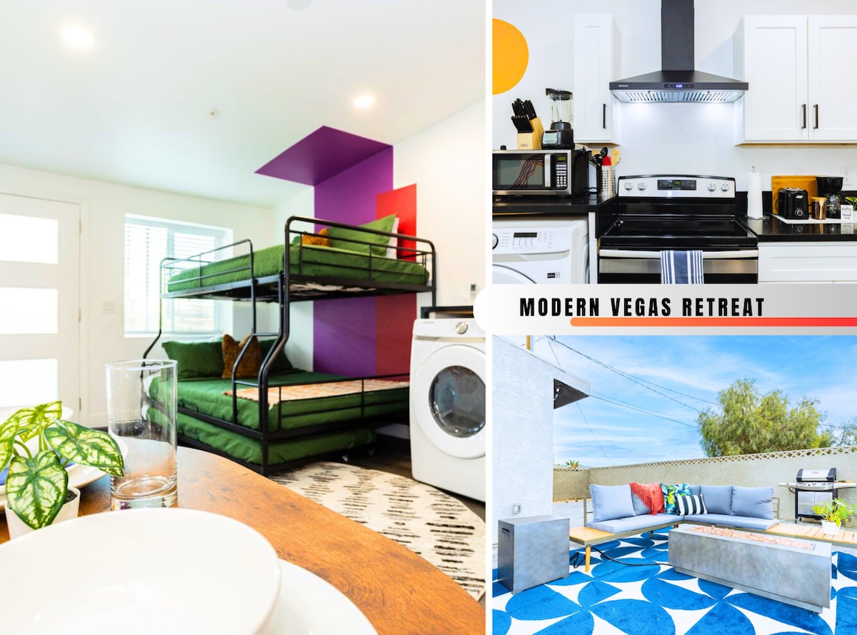 Discover the ultimate Las Vegas getaway in this spacious, private, and modern studio! ★ Premier Location: Walk to The Strip • Arts District • Fremont Street • Convention Center • Downtown w/ Strat Views ★ Well-Equipped Studio: Full Kitchen • Washer & Dryer • Refrigerator ★ Shared Outdoor Patio: BBQ Grill • Ping Pong Table • Lounge Seating • Fire Table • Smart TV & fast high-speed Wi-Fi internet • Complimentary essentials • Keyless check-in & luggage drop • Cookware & dishware • Free parking