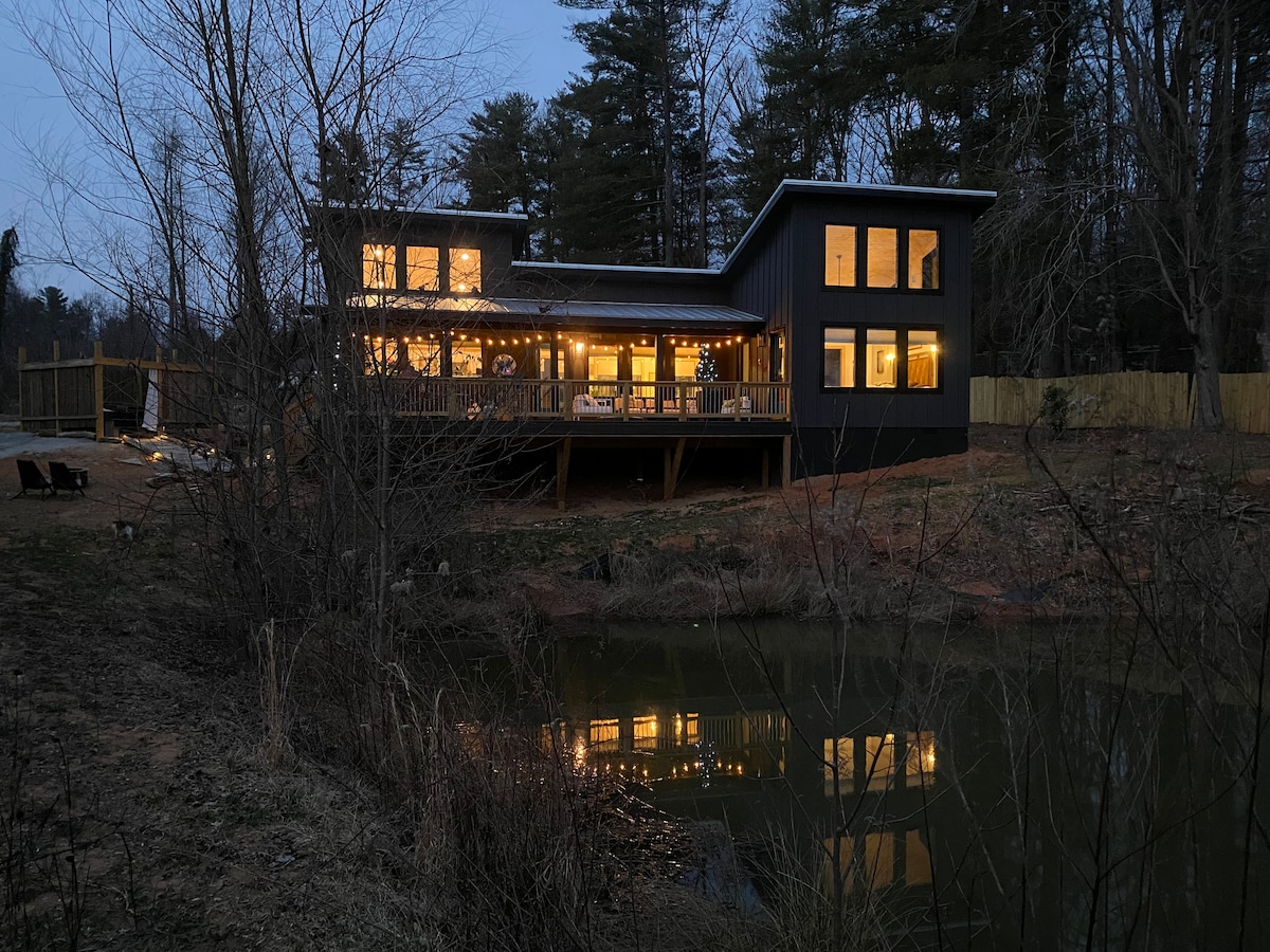 现代山区阿什维尔度假屋/热水浴缸