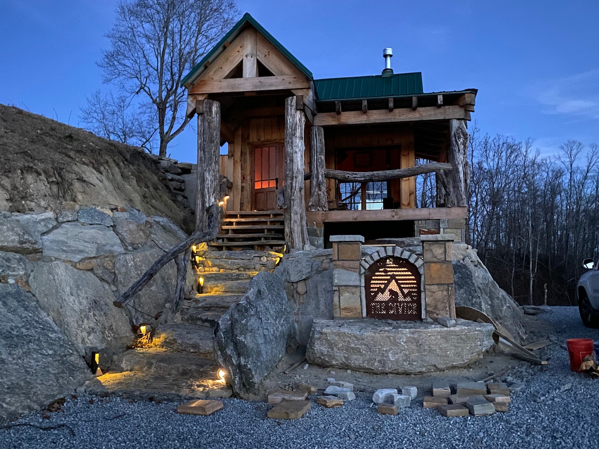 Handcrafted rustic log and beam cottage perched high on the backbone of The Eastern Continental Divide. Imagine enjoying your morning cup of coffee with the eastern sun peaking up over towering mountains and mist shrouded valleys behind the panoramic peaks of the GREAT SMOKY MOUNTAIN NATIONAL PARK to the west! See below for event/wedding bookings. ✔ Resting Over the Continental Divide ✔ Comfortable Queen Bed ✔ Outdoor Kitchen & Built-In Fireplace ✔ Expansive Deck with Scenic Views