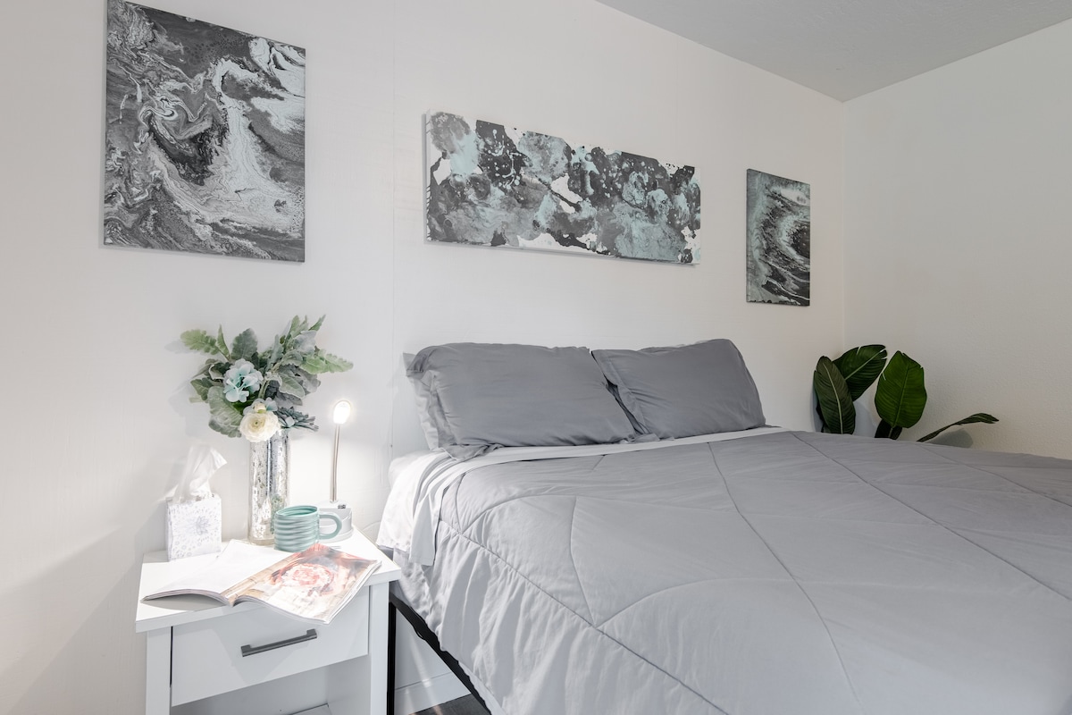 Built as an contemporary art studio this space offers an abundance of natural lighting and an open floor plan. It is walkable•spotless•beautifully appointed with personal touches. Private deck•welcoming vibe•original art & a 5 star host. Enjoy full kitchen•full bath•private parking and comfy bed. Unplug, relax, and de-stress or head out in any direction to experience endless activities & attractions in this vibrant S.E. Eugene neighborhood. *Best suited for adults (infants & teens welcome)