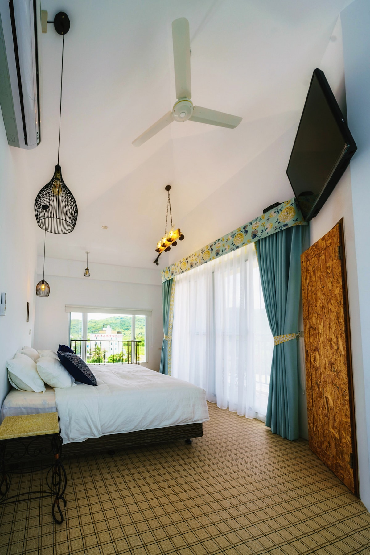 陽台2人房1大床,含陽台,獨立衛浴,每房優惠一位身高110公分以下孩童入住 182cm X 186cm 雙人床墊X1 32" Panasonic液晶電視 三洋環保冷媒一級冷氣 大同冰箱 網路電視 阿里山天仁茶包 FREE Wi-Fi MUJI CD音響 吹風機 艾格尼ONE洗髮乳(義大利進口) 艾格尼ONE沐浴乳(義大利進口)