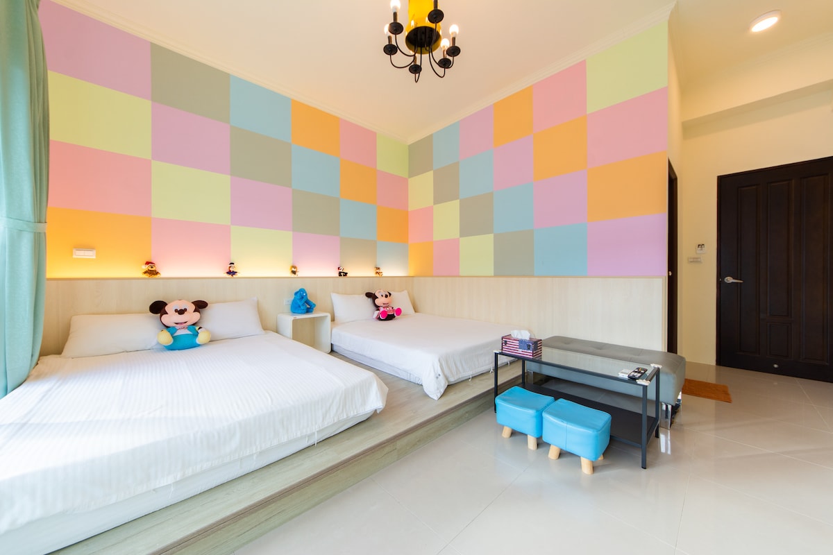 因為在城市遺失了自己,所以每一次披星戴月的出走,都重新被海療癒。 南灣海邊走路三分鐘,漫步到海邊的放鬆,浪漫抱了滿懷。 三房(雙人*1+四人*2)加上獨立出入口私人小庭院,以及海洋風KTV室,最適合歡聚度假的你們。 藝術房型的壁畫跟星空,像是你夢想中的臥室,讓假期不單調,還有共用的戲水池、烤肉區及麻將桌。 ps:小包院不是包棟,建築物內仍有其他房及旅客入住。 三房都有後門共同通往一個獨立小後院,後院由三房獨享,其他房旅客無法使用。 人數較少將會關閉部分房間,例如6人只會開2間房(雙人*1+四人*1),會有一間四人房關閉,若您人少,但想要比較多的房間,請諮詢我們,為您加價後再預訂。