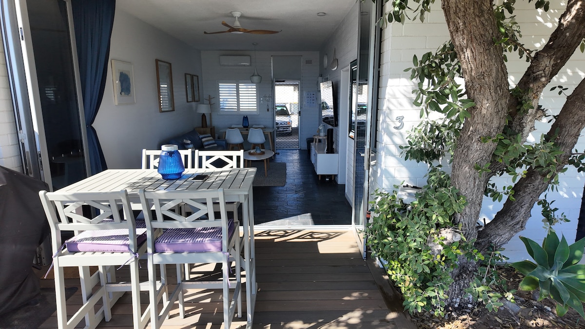 Beach House 3 is absolute beach front, ground floor apartment, NO stairs, own lawn area. Great Location to watch the sunset. Outdoor entertaining, with own B'B'Q facilities. Undercover parking at rear of complex. Front & Back entrances to property. Close to shops, cafes, bakery's and restaurants. Convenient to airport & outlet shopping. West Beach is an easy stroll to Glenelg to the South & Henley Beach in the other direction. Easy access to beach for any fitness levels and or disabilities.