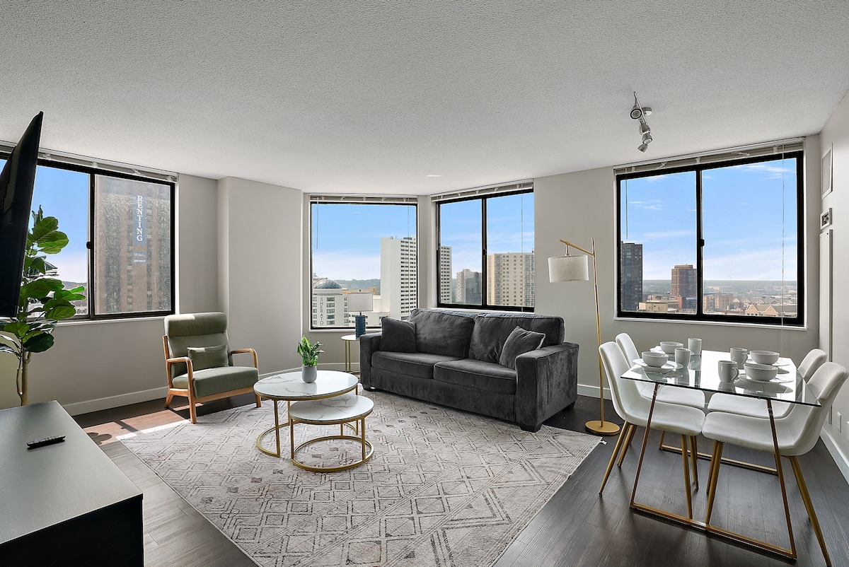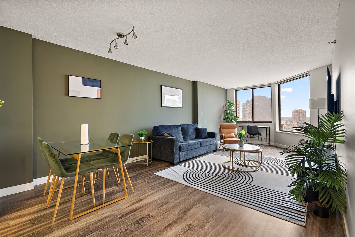This bright and modern high-rise apartment is located in a safe and central neighborhood downtown MPLS Here’s what to look forward to -Fully equipped kitchen, perfect for home-cooked meals -Smart TV, fast Wi-Fi & cozy living room for movie nights -Washer/dryer in unit, ideal for longer stays -24/7 secure building with elevator access -Walk to parks, grocery stores, and kid-friendly restaurants. Our family friendly apartment provides the space, safety, and comfort you need to enjoy your trip