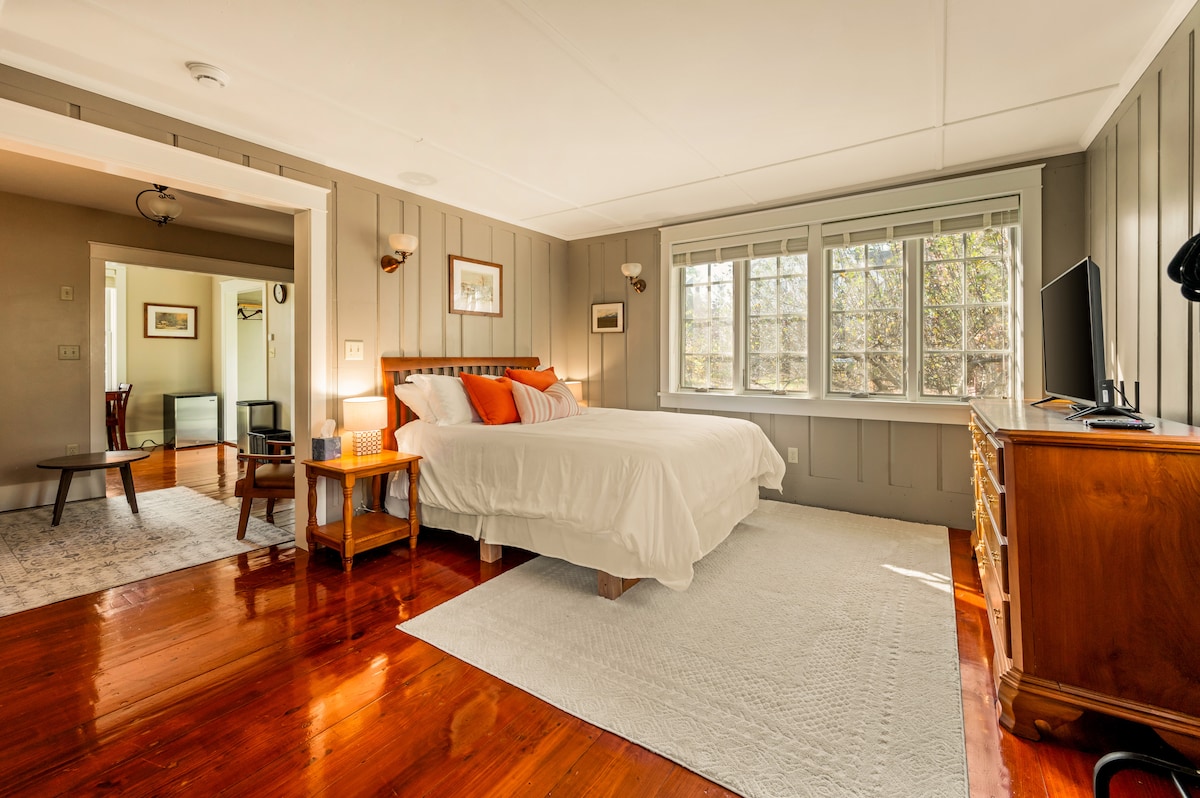 Kick back and relax in this stylish studio! Our house is in a quiet neighborhood of older homes surrounded by woodlands yet conveniently located downtown, a half mile from our village green (Milford Oval). A short stroll over the river will take you to cafes, restaurants, pubs with live music, post office, library, shops & useful stores such as CVS. Whatever brings you…business, skiing, hiking, antiques, a family celebration or a romantic weekend away…we are looking forward to hosting you!
