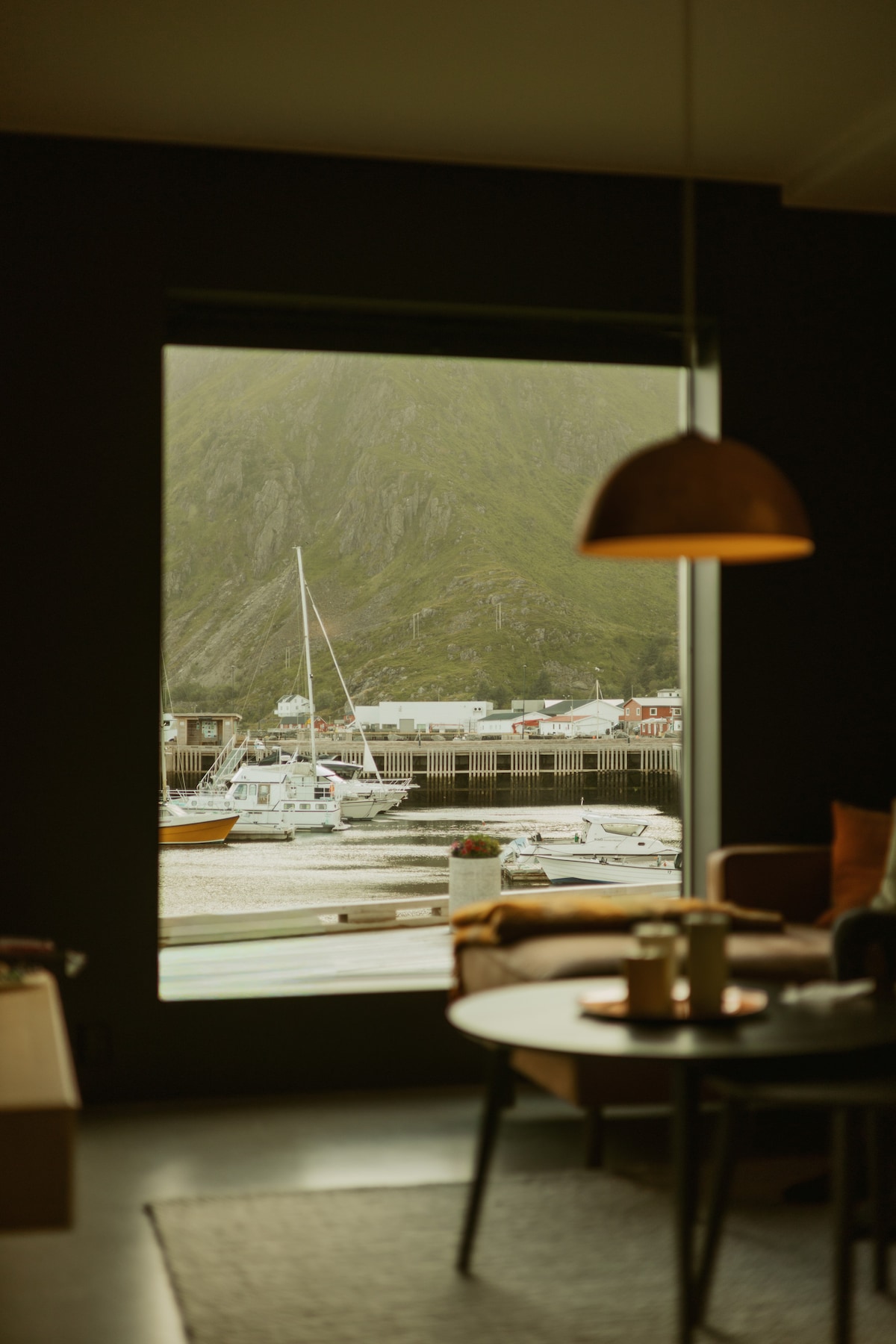 The apartment is located right by the sea in the unique fishing village of Henningsvær. The village is built on several islands surrounding the port. The streets are a mix of old and new, and the colourful houses contributes to the stylish and charmingly vibe. Here you can take a walk around and get lost in the majestic sight of Mount Vågakallen and the roaring sounds of the ocean.
