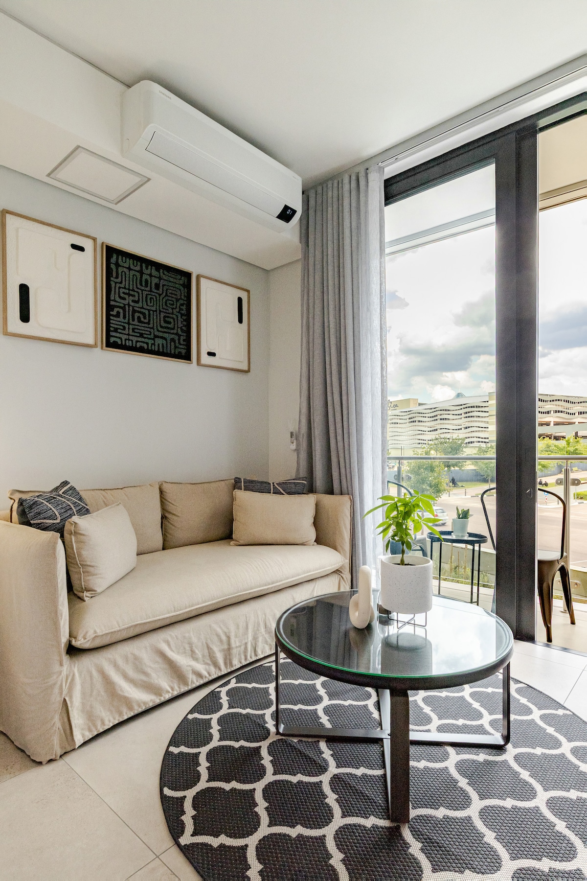 Enjoy a stylish experience without load-shedding at this centrally located apartment. Boasting two patios with scenic views over the east of Pretoria. Featuring 1 bedroom, a modern kitchen with microwave, a 75" smart TV, a seating area and a bathroom with a shower. This unit is situated in Pretoria, close to Atterbury Boulevard, walking distance to Menlyn Maine shopping centre and Time Square Casino. The rooftop pool & restaurant is currently closed for renovations until end of Oct 2025.