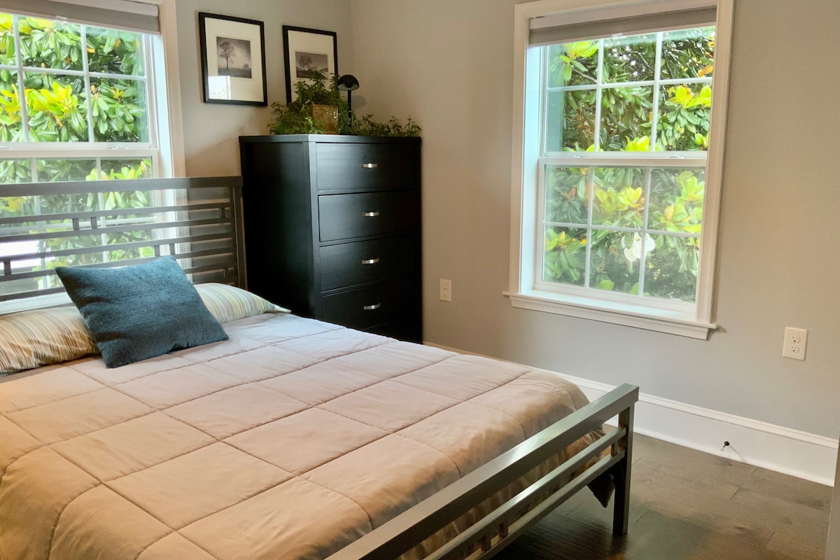 Kick back and relax in this calm, stylish space. Private, modern studio suite on the first floor of a single family home in Glen Allen, Virginia. The home is located in a quiet, friendly suburban neighborhood that is close to both Short Pump and downtown Richmond. Just 20 minutes away from downtown Richmond and an even closer 10 minutes to Short Pump, both packed with restaurants, shops, and other attractions. Wooded area behind the home has a hiking path to the Echo Lake Park for nature lovers.
