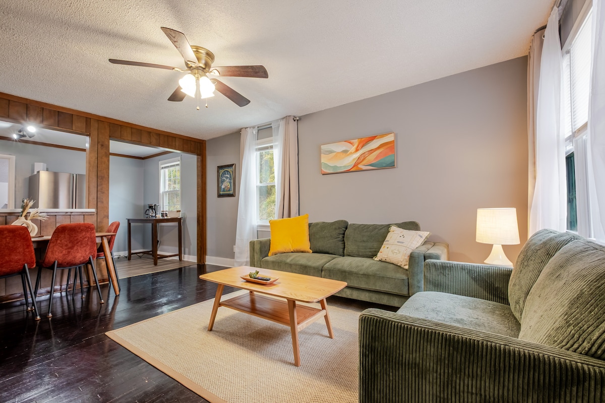 Welcome to Casa Terra, your serene urban retreat, perfect for families & furry companions. Tucked away on a sprawling 1/3 acre, this property is a rare gem. Let your dogs run free in the 6-ft fenced backyard or lounge in the screened gazebo. Inside, unwind in the living room with a 55-inch smart TV, or cook in the remodeled chef’s kitchen with an induction stovetop and all the essentials. You'll find two queen bedrooms & a full pullout sofa for additional guests—all designed for a restful stay.