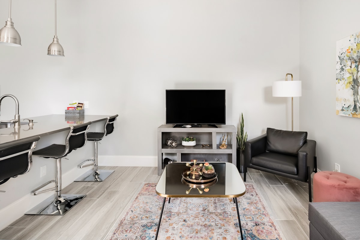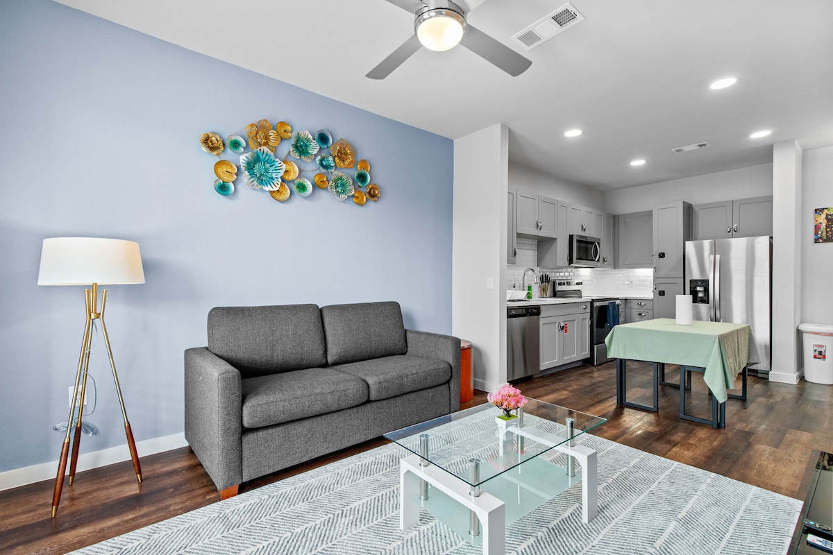 🌟 Modern Western Style: Sleek, Texas-themed decor with high ceilings 🛏️Comfy Stay: King bed, sleeper sofa, full kitchen and in-unit laundry 📺 Stay Connected: YouTube TV and 300 Mbps Fiber WiFi 🌴 Top Amenities: Pool, gym, lounge, washer/dryer 🚗 Gated parking available 🐾 Pet friendly for your furry friends 🚙 Location: Walk to Riverwalk, 7-min to Pearl ➜ $150 pet fee - Please disclose that you are bringing a dog when your reservation is made. Sadly we do not allow cats.