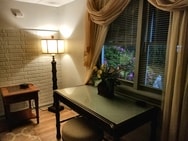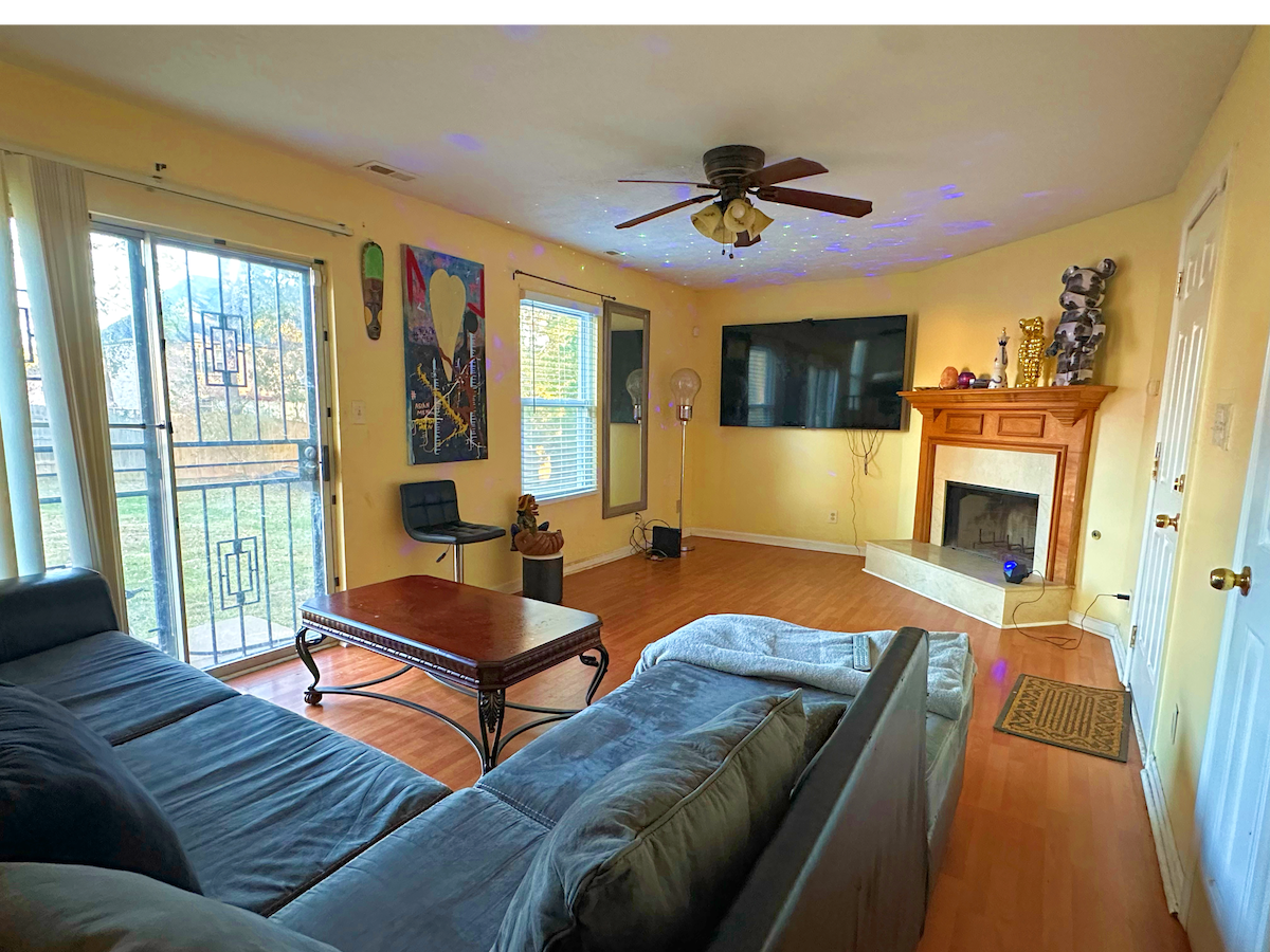3 sided brick home with 2 dining tables. One table seats eight people in the kitchen and the other seats six people in the dining room. Has a large back deck, huge backyard & fishing pond access. The main bedroom has a jetted tub & cali king bed. Backyard is large enough for mod event. Tables and chairs are available onsite for rental. Inquire for pricing.
