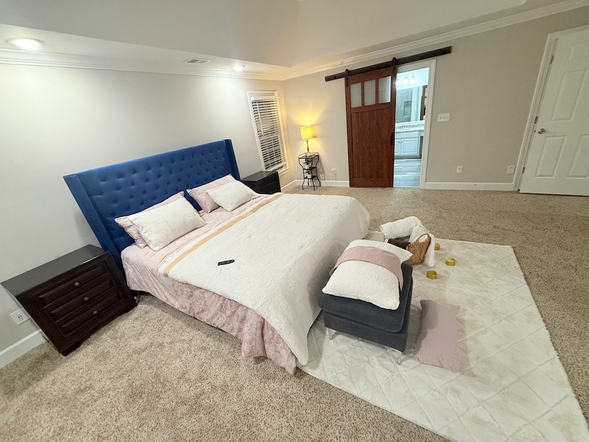 Get away to the tranquil 12-acre Carmel Lake Estate, which is tucked away in southern Atlanta's verdant surroundings. This unusual property has a charming lake and a recently remodeled, comfortable cottage that can sleep up to 10 people. This peaceful haven offers the ideal setting for treasured moments, whether you're planning a cooperative retreat, a family reunion, or an event. ideally situated close to the ATL Airport (29 minutes) and the Atlanta Motor Speedway (14 minutes).