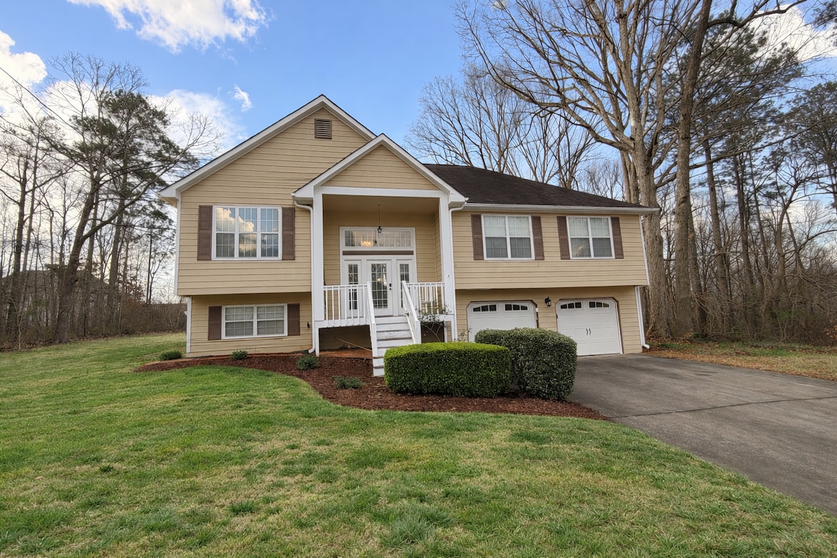 This Gorgeous 3B/2B home equipped with a full kitchen (including coffee and cooking supplies), bath (w/shampoo, conditioner, body wash), spacious in yard patio & comfortable beds+2 Rollaway beds. This clean home is located within 5 minutes to lots of restaurants & entertainment. The community comes equipped with a shared pool which only our guests/residents can enjoy during the summer. The world renowned Atlanta motor speedway is only a 10min drive! Enjoy fast free WIFI & Roku TV in every room!