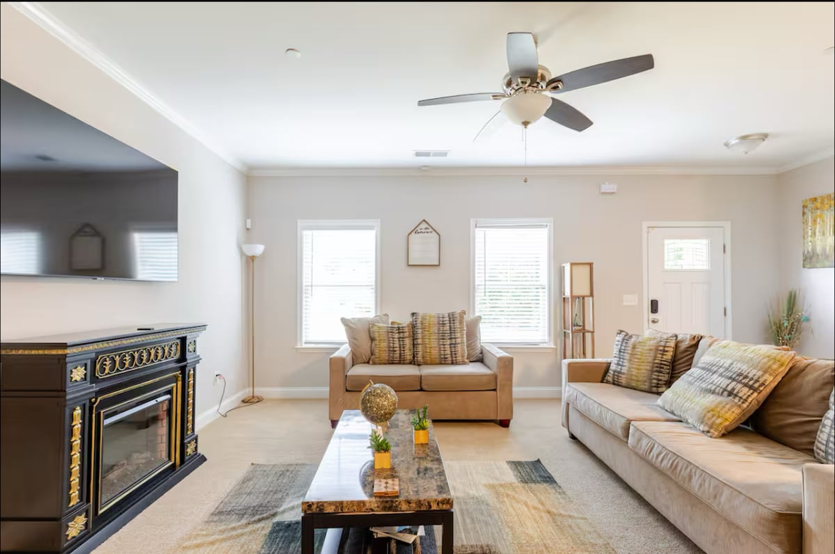 South-meets-island inspiration at this fun retreat near Atlanta Airport on the South Side of Metro ATL. Just minutes from EchoPark Speedway, hospitals, gov offices, and downtown--it's ideal for families, business travelers, and racing fans. Our cheerful home features relaxing vibes and is nestled on a quiet cul-de-sac in a welcoming neighborhood. Enjoy luxury queen beds, plush robes and slippers, welcome snacks, games, and indoor/outdoor dining on a deck overlooking a spacious backyard.