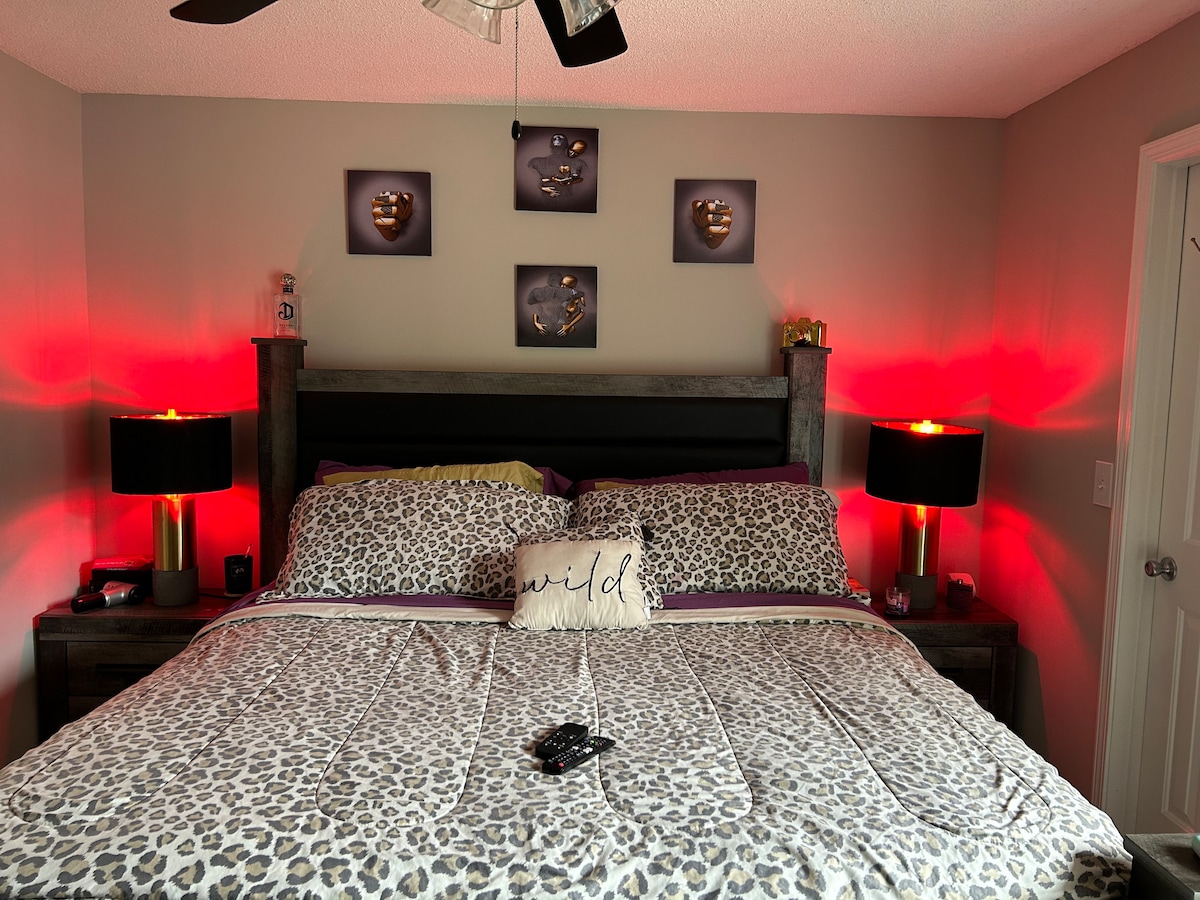 Take it easy at this unique and tranquil getaway. Comfortable bachelor pad type stay , 1 bedroom one bath. •Only 15 minutes from airport •Golf course next to property •multiple grocery stores and restaurants near by •computer and printer •liquor bar •15 minutes from mall and movie theater •20 minutes from Atlanta motor speedway Everything you could possibly need and more Less restrictions ,more fun and more like home Lost key fee $250 Pet fee $100 Smoke friendly smoke fee $50