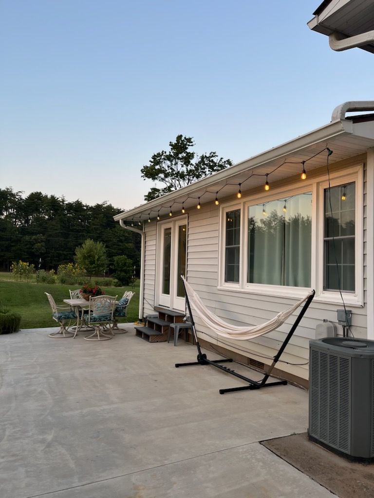 The Porch at Fairystone is your home away from home. This 1 bedroom 1 bathroom vacation home boasts a large open concept with the living area, kitchen and dining area all in one large room. Through a beautiful barn door you’ll find your bedroom and in-unit laundry closet with washer and dryer. Enjoy a beautiful outdoor dining space with chairs for 3 and a grill to cook your favorite meals. Just minutes away from Fairystone State Park, Goose Point, and Philpott Marina, Dam and Lake.