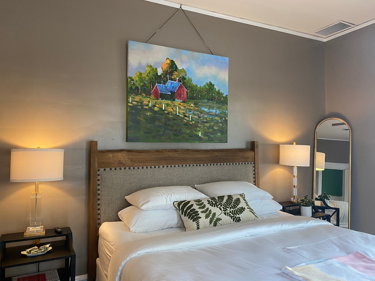 The Porch at Fairystone is your home away from home. This 1 bedroom 1 bathroom vacation home boasts a large open concept with the living area, kitchen and dining area all in one large room. Through a beautiful barn door you’ll find your bedroom and in-unit laundry closet with washer and dryer. Enjoy a beautiful outdoor dining space with chairs for 3 and a grill to cook your favorite meals. Just minutes away from Fairystone State Park, Goose Point, and Philpott Marina, Dam and Lake.