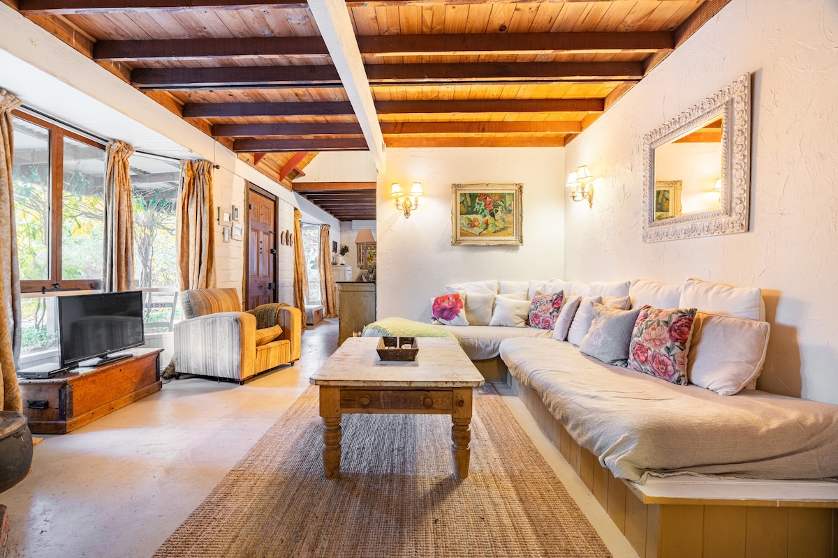 Situated in "cool country" Trentham, the Chef’s Shed was originally built in 1860, and has been lovingly transformed into a cosy, spacious and unique place to stay. It has quirky living spaces, including a loft, and wide, stunning views over the land around, even from the private sauna which can be used for a modest fee. From here you can explore the region. We are surrounded by nature, and a few minutes from The Falls and historic Trentham with cafes, pubs, walking tracks and a lot of history.