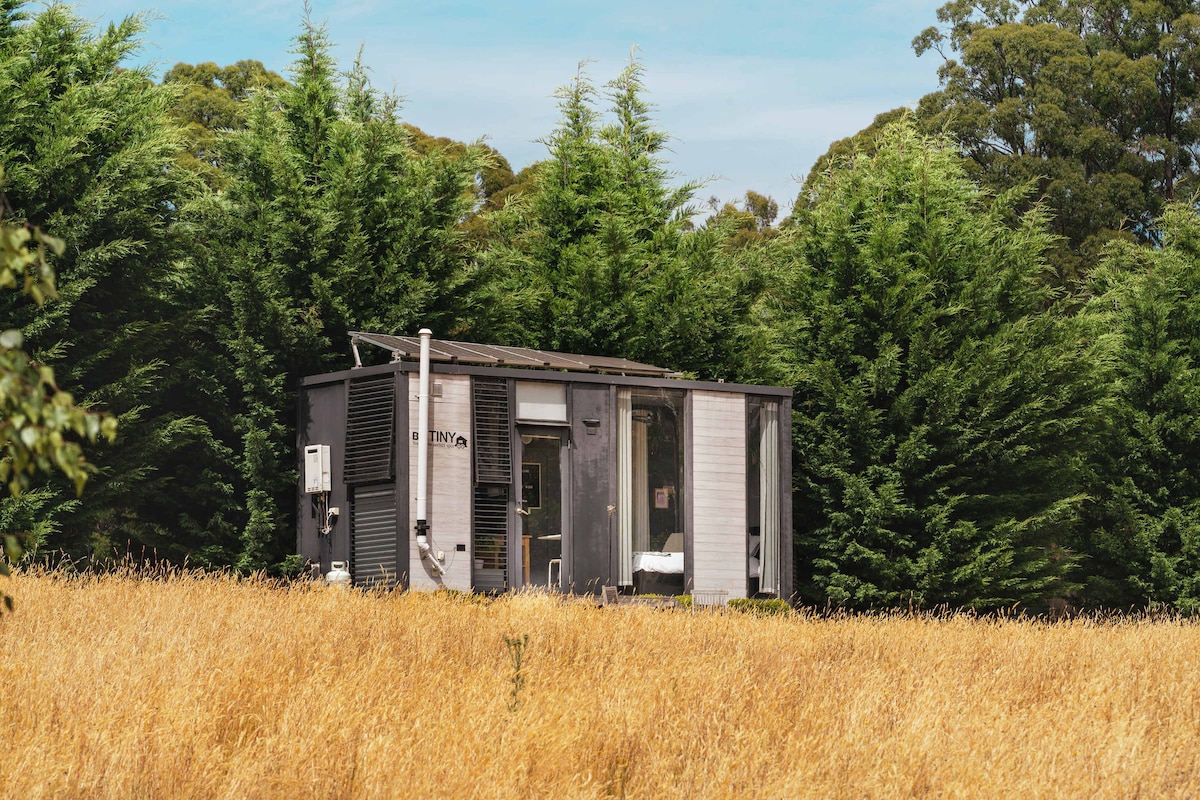 A secluded and intimate luxury escape inspired by the need to live smaller and more sustainably, Monterey is an eco-friendly off-grid tiny house nestled amongst 35 acres of native forest offering guests the perfect opportunity to explore nature, unwind and recharge. Built from salvaged Monterey Cypress timber, the house offers a dreamy king sized bed downstairs with floor to ceiling windows. Explore the surrounding forest and wildflowers and immerse yourself in the sounds of nature.