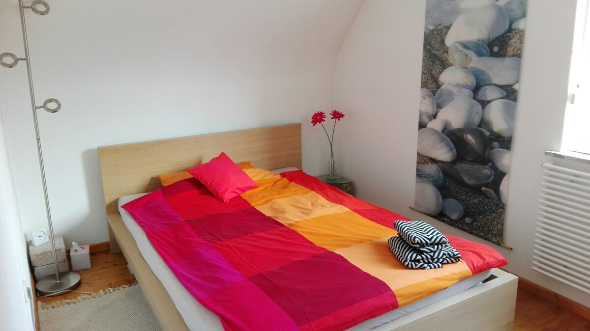 A kitchen with living-room space, a bedroom and a bath only for you. The ideal spot for eating, living, sleeping and watching TV. Or you step out for running, hiking or biking or just for a walk in nature. It is just behind the house. Our flat can be booked for home-office or vacation purpose. Our flat suits best for 1-2 people. 1 additional person can sleep on the sleep sofa.