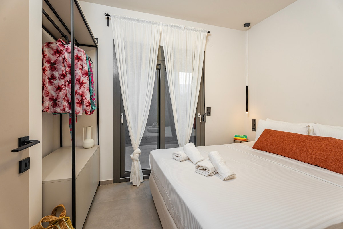 To Deluxe Junior Suite Η σουίτα μας είναι ένας φωτεινός και άνετος χώρος που προσφέρει minimal αισθητική με γήινες αποχρώσεις και μοντέρνες πινελιές. Ξεχωρίζει για το άνετο υπνοδωμάτιο με king-size κρεβάτι, το μοντέρνο μπάνιο με κομψό φωτισμό και το λειτουργικό καθιστικό με δύο ευρύχωρους καναπέδες που μπορούν να φιλοξενήσουν επιπλέον άτομα. Η πλήρως εξοπλισμένη κουζίνα, ο έξυπνος σχεδιασμός και η προσεγμένη διακόσμηση δημιουργούν την ιδανική αίσθηση “σαν στο σπίτι σας”.