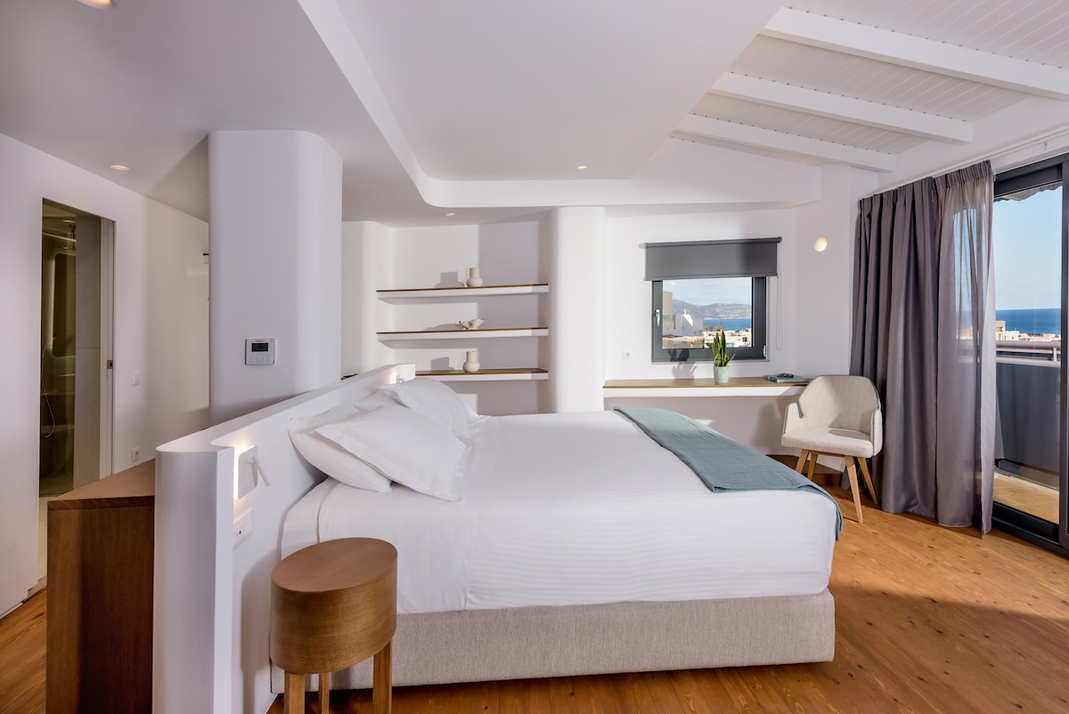 Deluxe Category is a special & new category in Notos Heights Hotel & Suites, with renovated Luxurius Rooms, comfortable and well equipped, feature views of the sea.With balcony, they include all the amenities necessary for an enjoyable stay, including armchairs, Wi-Fi internet access, safe boxes