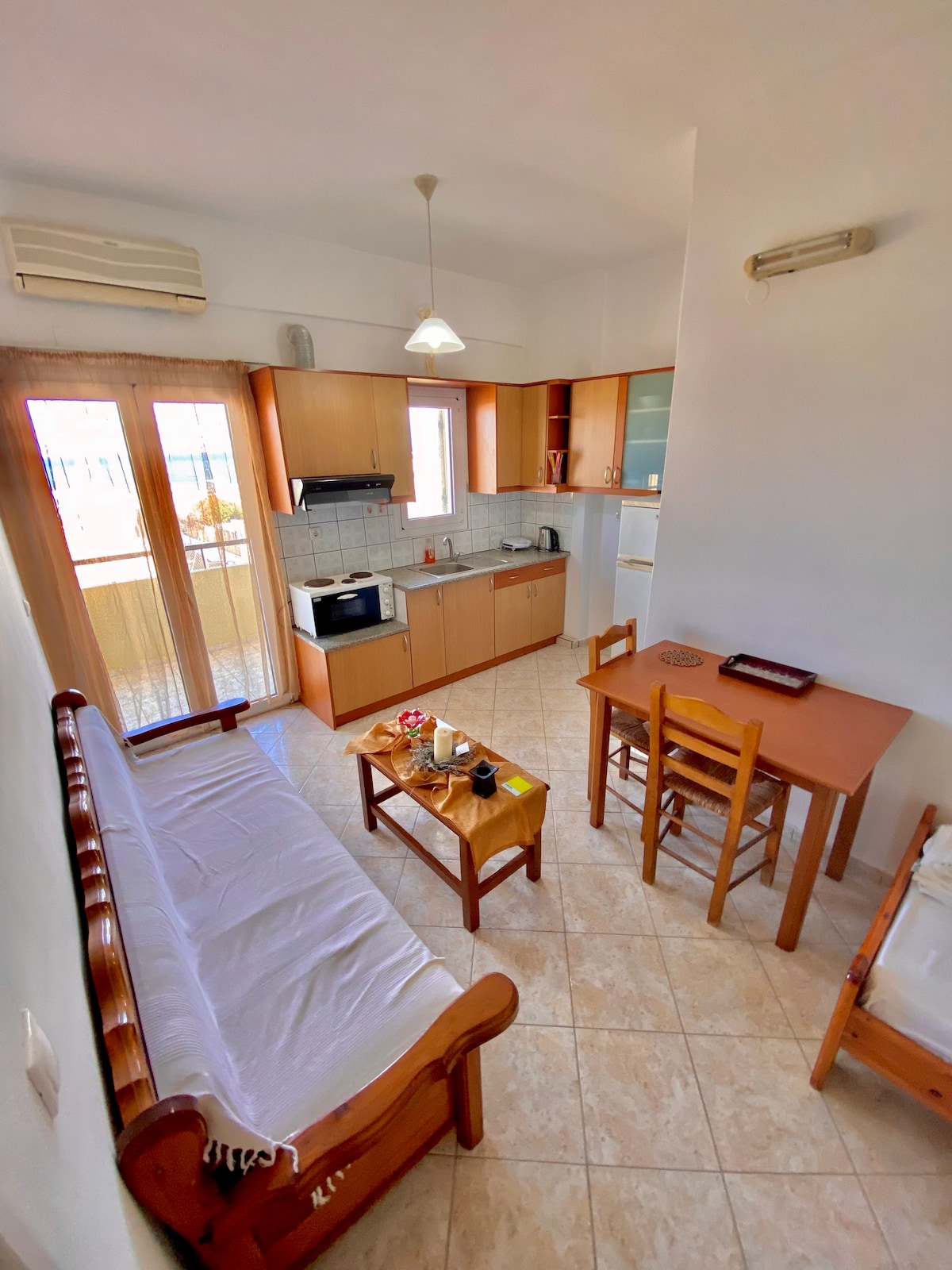 Fully furnished, very modern and recently renovated 40 square meters apartment. The beach is only 200 meters away. You can also use the pool that is next to the apartment. The apartment offers accommodation in Amudara Herakliou, 6 km from Heraklio Town.Next to the bus stop for heraklion and direct line to the airport. Is also 29 km from Hersonissos. The kitchen offers small oven, toaster, kitchen kettle, blender and a fridge. You will have free sheets and towels for all the days of your stay.