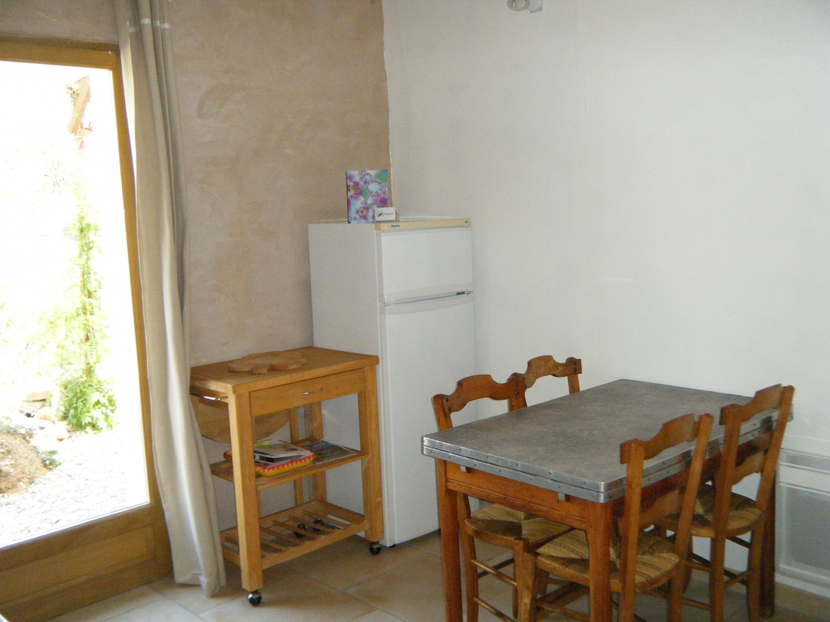 Chambre dans un bâtiment indépendant qui servait d'écurie pour les vignerons. Calme garanti et le tout de rez de chaussée. Le patio est très agréable en été et donne vers une impasse. Un repas sous le soleil bleu ? Même une cuisine est à votre disposition. Espace de travail Wifi. En été, je prépare le petit déjeuner sur notre grande terrasse plein de plantes et de fleurs. Comprenant pain, croissants, confiture et même de la charcuterie pour ceux qui aiment.