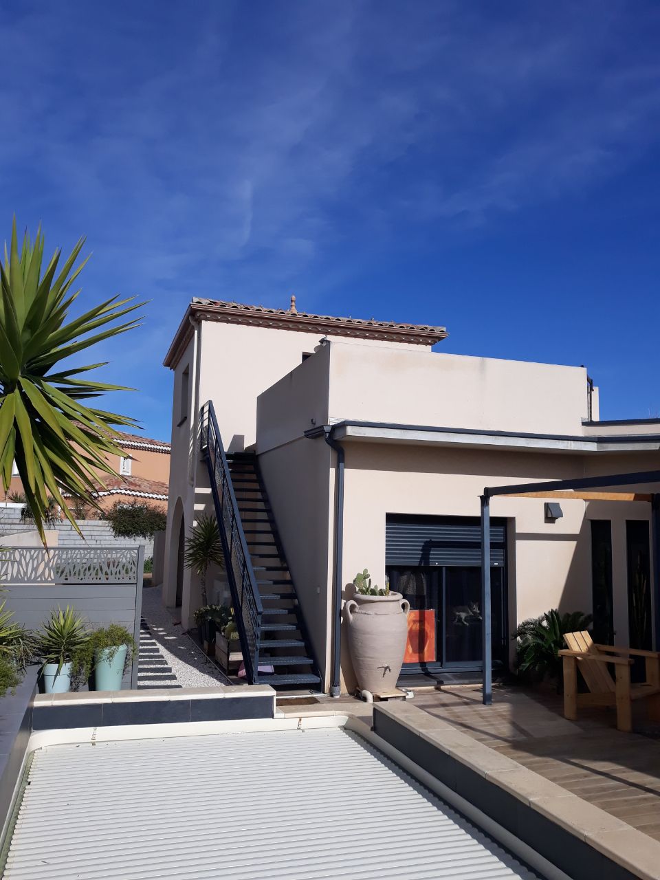 Mer à 3 km à vol d’oiseau. Suite résidentielle indépendante comprenant piscine privative libre d’horaire, lit filet catamaran pour voir les étoiles sur la terrasse de 25 m² et sentir la brise, vue sur les Pyrénées sans pollution lumineuse, douche italienne, WC privatives, cuisine extérieure couverte. Confort et d’intimité, invitation à la détente et au lâcher-prise. Au cœur d’un quartier résidentiel, commerces, restaurants, bars, équitation, bateau électrique…