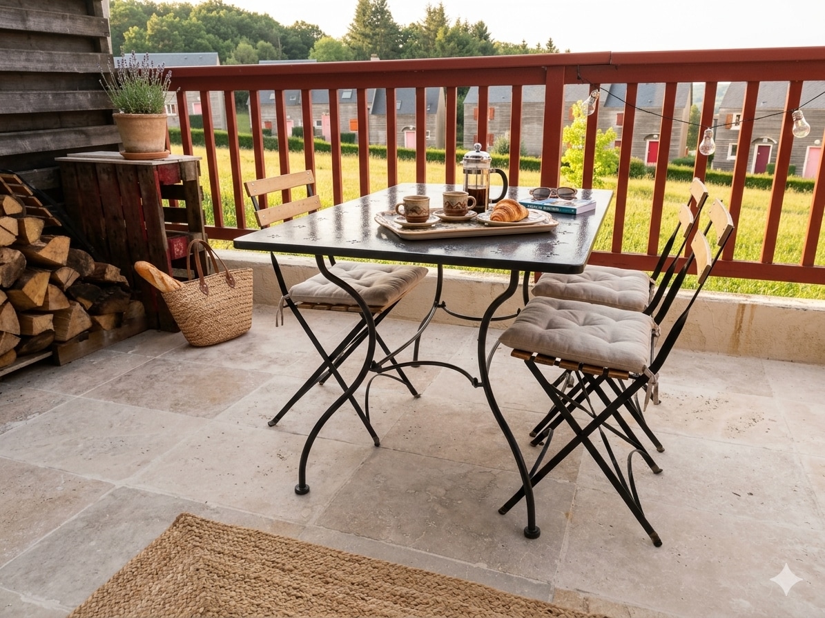 Ce chalet autonome en eau et électricité se situe sur un grand terrain de 1600 m2 arboré proche d'une ancienne et magnifique carrière. Il est constitué d'un salon très ajouré, avec un poêle, un canapé d'angle et un fauteuil tous deux convertibles, une cuisine équipée, une chambre et une salle de bain. Vous disposez d'un barbecue, d' une table de ping-pong, de deux hamacs, de deux transats, de trois tables avec la possibilité de planter des tentes. Poules, chats et chien sont en liberté.