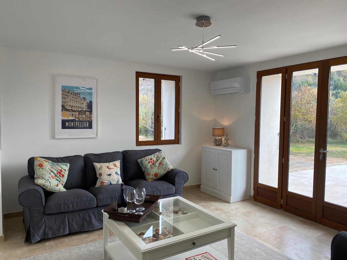 Notre gîte se trouve au milieu des vignes aux abords de notre petit village vigneron au pied du causse du Larzac. Le gîte est construite à côté de notre hangar viticole et possède tout le confort nécessaire pour passer un agréable séjour. Cuisine équipée, climatisation réversible, parking privé et piscine. A 30 minutes vous trouverez trois sites incontournables: Saint Guilhem le désert, le Cirque de Navacelles et le Lac du Salagou - Cirque de Mourèze. Idéal pour les randonneurs, cyclistes..