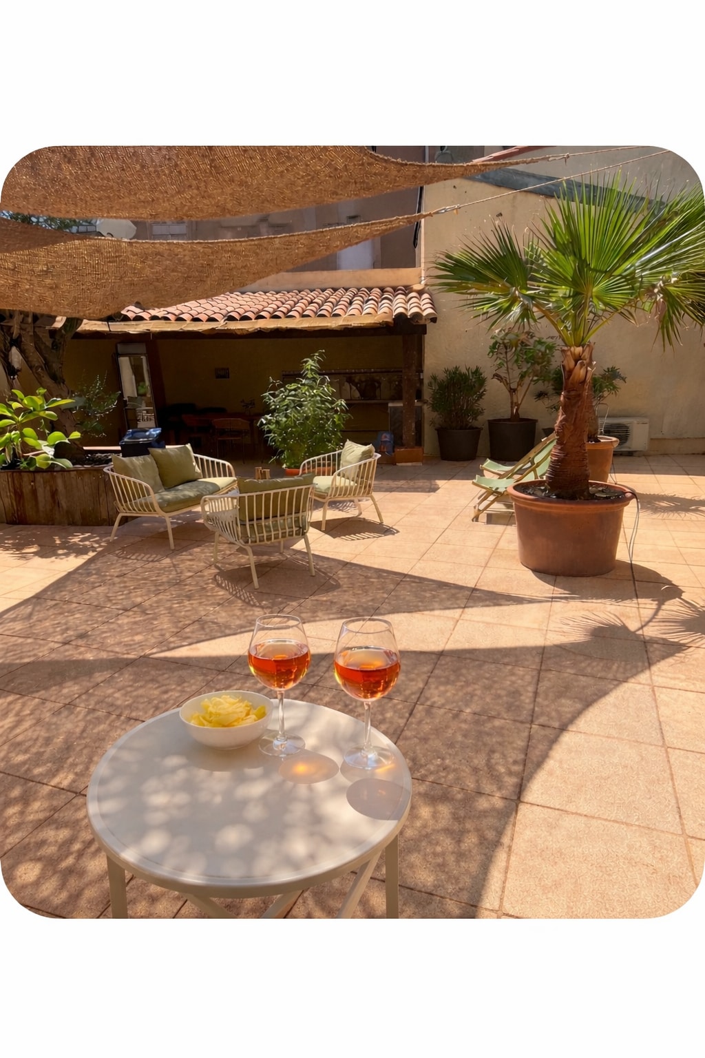 Welcome to Villa Palmera, a 200 m² bungalow with a charming Mediterranean feel We invite you into a world where authenticity and elegance subtly blend together. The soothing, natural decor is inspired by the gentle warmth of the South and the colors of the Mediterranean. Let yourself be seduced by an atmosphere conducive to relaxation and well-being, where each space is designed to create unique moments. Ideal capacity: 8 adults, 4 children or teenagers.