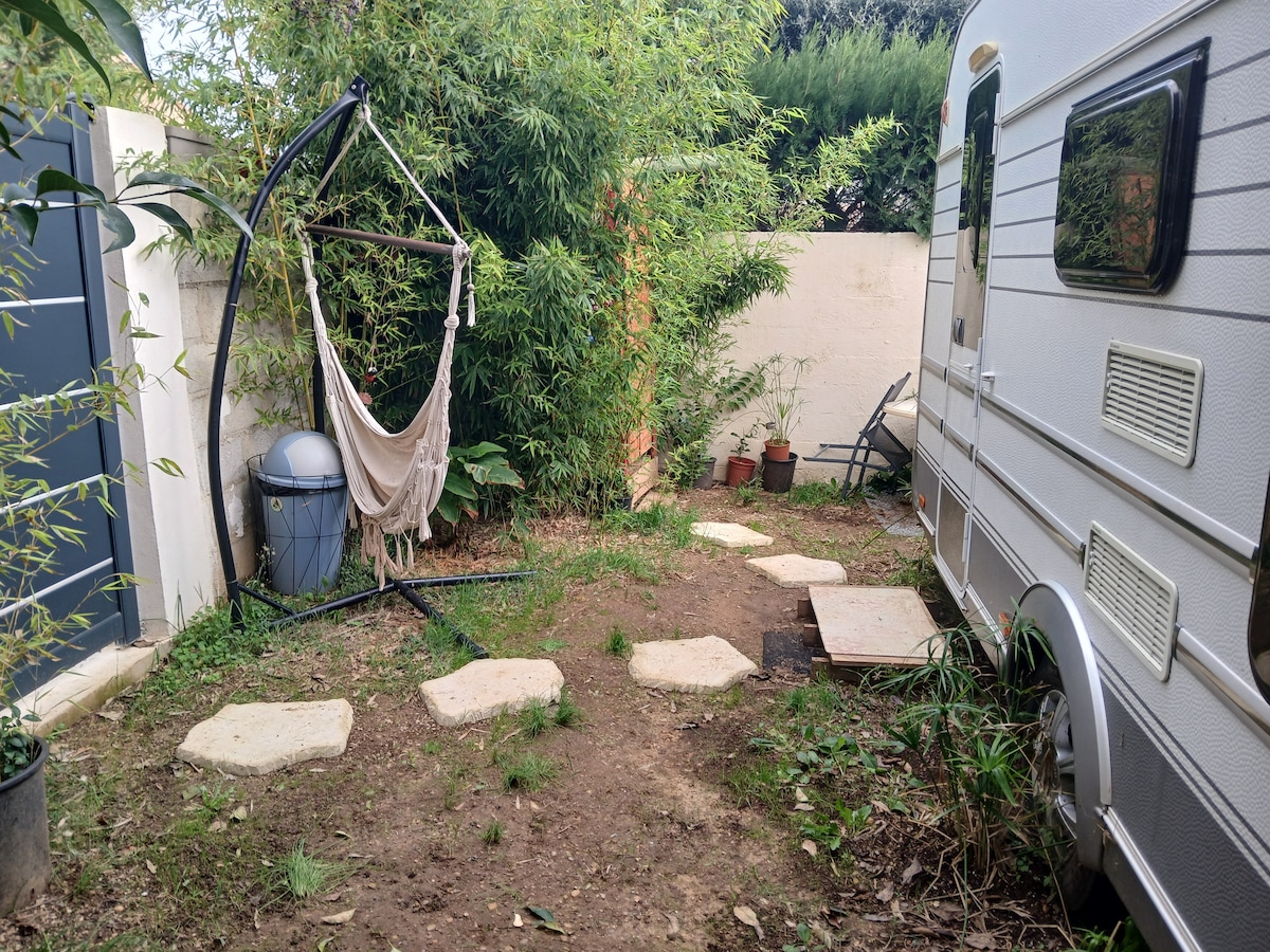 Venez vous détendre dans ma caravane bohème . Le jardin est grand , vous pourrez en profiter à votre guise . L’ambiance est calme et ressourçante . C'est un lieu qui se partage en toute tranquillité avec des vacanciers de passage . Vous êtes à 20 minutes de la mer et à 20 minutes du centre ville de Montpellier en voiture . Cadre sauvage au bord de l'étang de l'or à 5 minutes de la maison ,balades , canoé ..