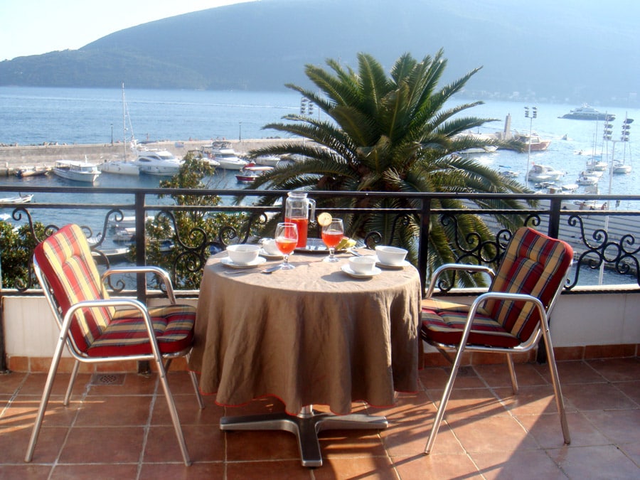 Penthouse apartment with high ceilings, 90 m2. Kitchen with dinning room and large living room, two bedrooms, two bathrooms, hydro-massage shower, two balconies with sea views. One king size bed in master bedroom, two single beds in sleeping room and a pull out sofa in living room. Wooden floors in bedrooms and living room. Completely equipped and new (built in June 2013). High acoustic and thermal insulation, air conditioning. Four stars by Ministry of Sustainable Development and Tourism. The apartment is NOT car reachable, because the house is at seaside and cars are not allowed here. The closest place to park is City garage which is 100 stairs above the house. Apartment at great location seaside by promenade, nice sea-view and a reasonable price. Beach, restaurants, coffee bars, shops all around. City marina and Old town 3-5 minutes walk. All kind services and activities can be provided, such as transfers, shore tours, excursions, hiking, biking, speed boat trips... I want this place to be as best as possible. I really appreciate your opinion about it. Leave me your comments and opinions. Hope to see you from everywhere! Welcome to Herceg Novi!