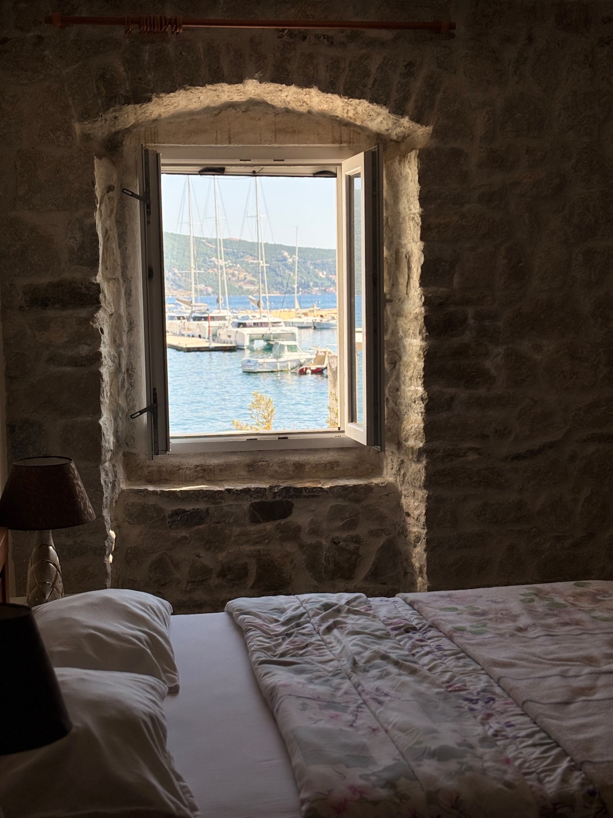 In the middle of the only fjord, called the Bay of Kotor, in the Adriatic sea, lies an authentic small village Donja Lastva, where the people have time for a talk, help each other and considering and respect the nature around them. The apartment is completely renovated with separate bathroom & bedroom. The apartment lies 20 meters from the sea. When you open the window your view are the sea and the mountains and you smell the nice flavors of the sea, the trees, flowers and herbs.