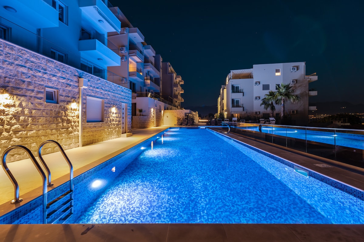 This stylish place to stay is perfect for people looking for peaceful time and again to have all in a reach of a hand. Apartment is very specious and has all one need for comfortable stay, beautiful terrace for memorable sunsets in once own privacy or even more sunlight plays upon the surface of infinity pool with most stunning sea views ! Proper kitchen, big open plan dining /living , bedroom with large wardrobe. More over complex has indoor hot tub, Turkish bath . Parking provided!
