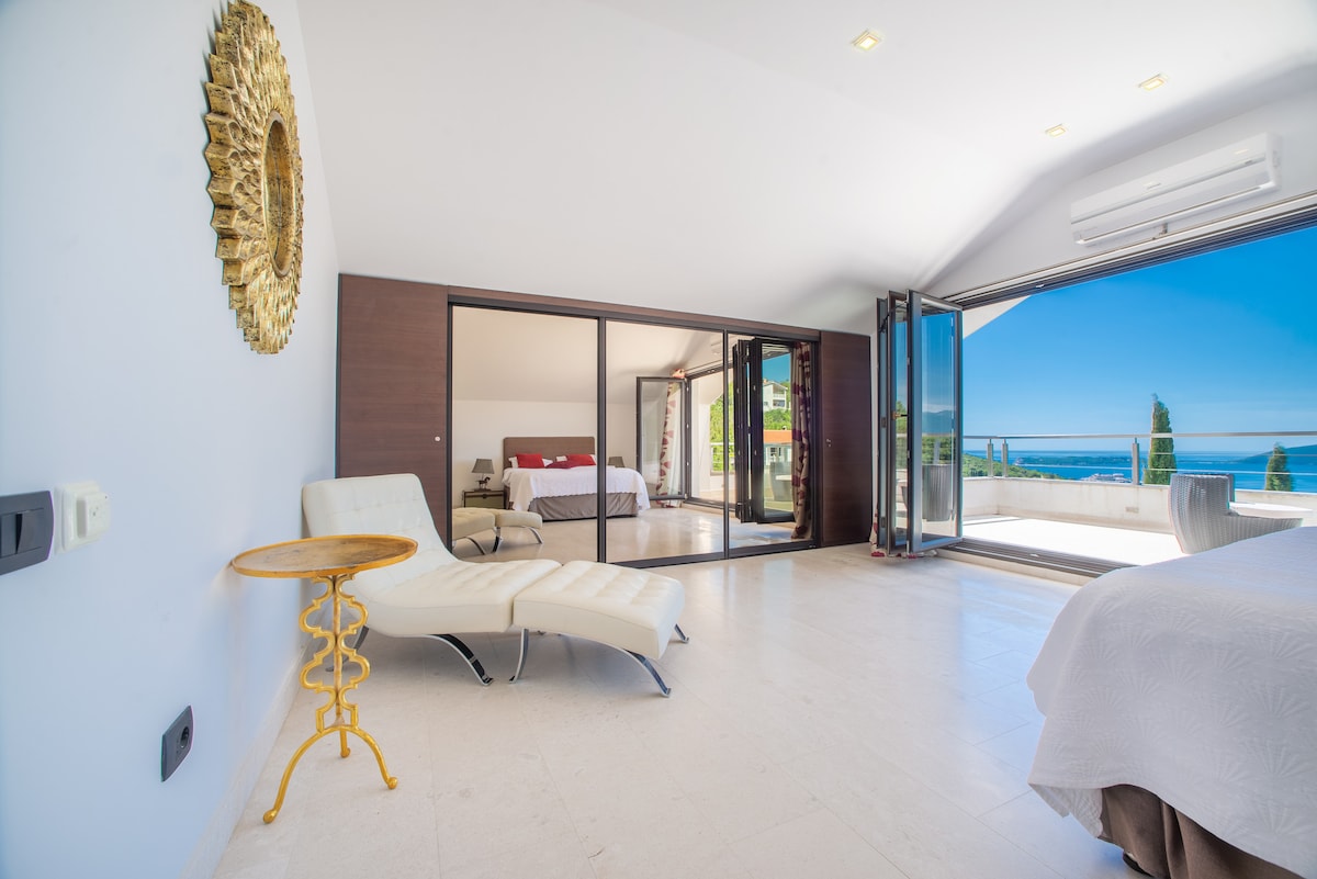 This outstanding villa has been carefully designed bringing together all the necessities and luxury of modern living. Situated on the Lustica Peninsula, it boasts a breathtaking unbroken view of the Boka Bay from all of its rooms. A large open plan kitchen opens out on to the luxury private pool and outside dining area. Perfect for gatherings on warm summer days. Beaches, restaurant’s and bars are just a short car journey away making this a perfect get away vacation.