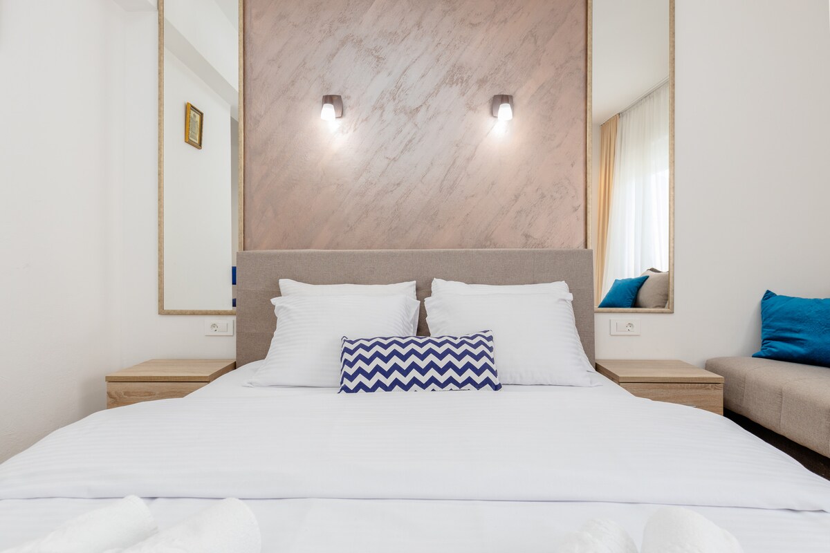 Modern and cozy 50 sqm one-bedroom apartment in an amazing location, at one of Herceg Novi best neighborhoods -Savina, just steps from the sea in a quiet family home. 15 minutes walking distance from city center . Perfect for couples, friends, colleagues, families and solo travelers. On the 1st floor; accommodate up to 4 people. Non-smoking apartment No parking (guests will need to find parking in paid parking zones on the street)