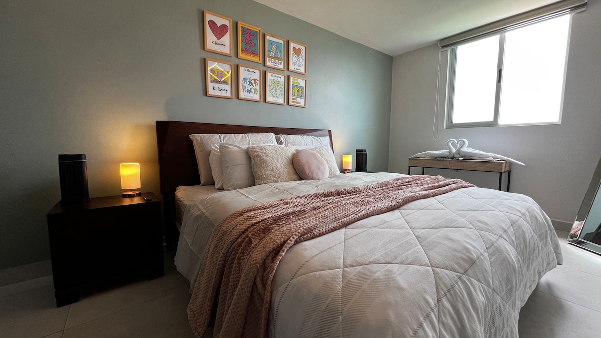 ¡Hola! Disfruta de comodidad y vistas impresionantes a solo 15 min del aeropuerto. Restaurantes, piscina, gimnasio, TV con ChromeCast, cama queen, espacio para trabajar, cocina completa y baño con agua caliente. Nuestro espacio es perfecto para que disfrutés tus días en un acogedor apartamento, a tan solo 15 min del centro de San José y muchos oficentros. Ema y Migue!