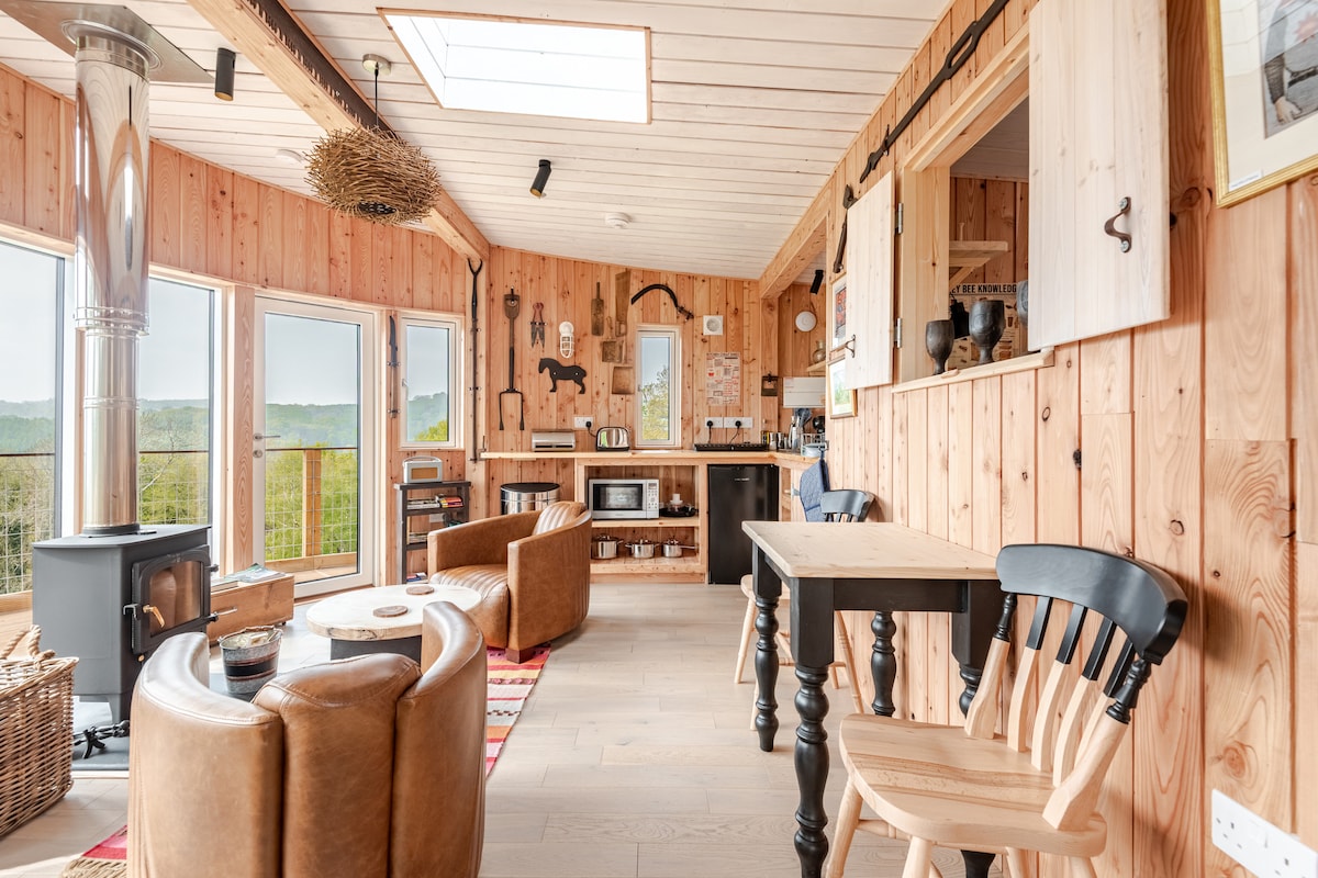The perfect space to rest, retreat & reconnect. "You will literally feel your pulse slow down & a deep peace settle in." Glorious views both from veranda & within this warm spacious, light yet cosy cabin. Perfect place to watch the weather go by & the ever-changing views by the fire or from a hammock. You feel like you are miles away from everything whilst only being a short drive from anything you need. The privacy, hammocks and wood burner make it generally blissful! Optional breakfast/meals.
