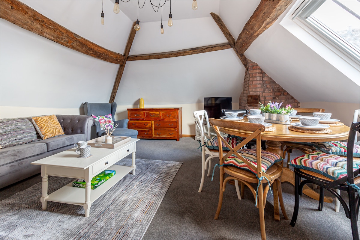 The Apartment at Palmers House is a beautifully refurbished stylish apartment located in central Ludlow - 2 mins walk from the river, bustling market square and the 11th century castle. Our spacious apartment accommodates up to 4 guests in order to explore this lovely old town and its surrounding areas. We provide a permit for free on street parking which allows you to park 1 vehicle on Mill Street where we are located. We leave a selection of breakfast items to get you off to a good start.