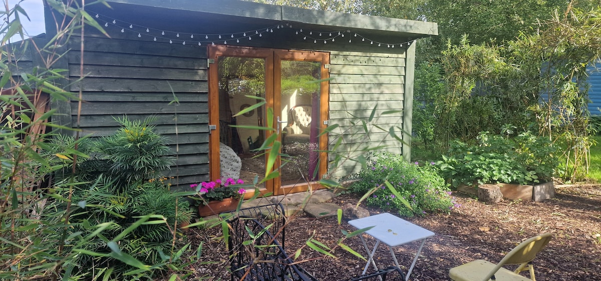 Hi, we have a beautiful summerhouse in our lovely extensive gardens plenty of off-road parking in The Kabin is fridge microwave Tv , heatimg DIY breakfast of cereals juice etc provided Bathroom is in the main house which is approximately 40 steps across the garden which is 24 hr access Lift can be supplied to nearby venues if required for a nominal fee There is a bbq if the sun shines and guests welcome to use main kitchen for prep light meals air fryer supplied