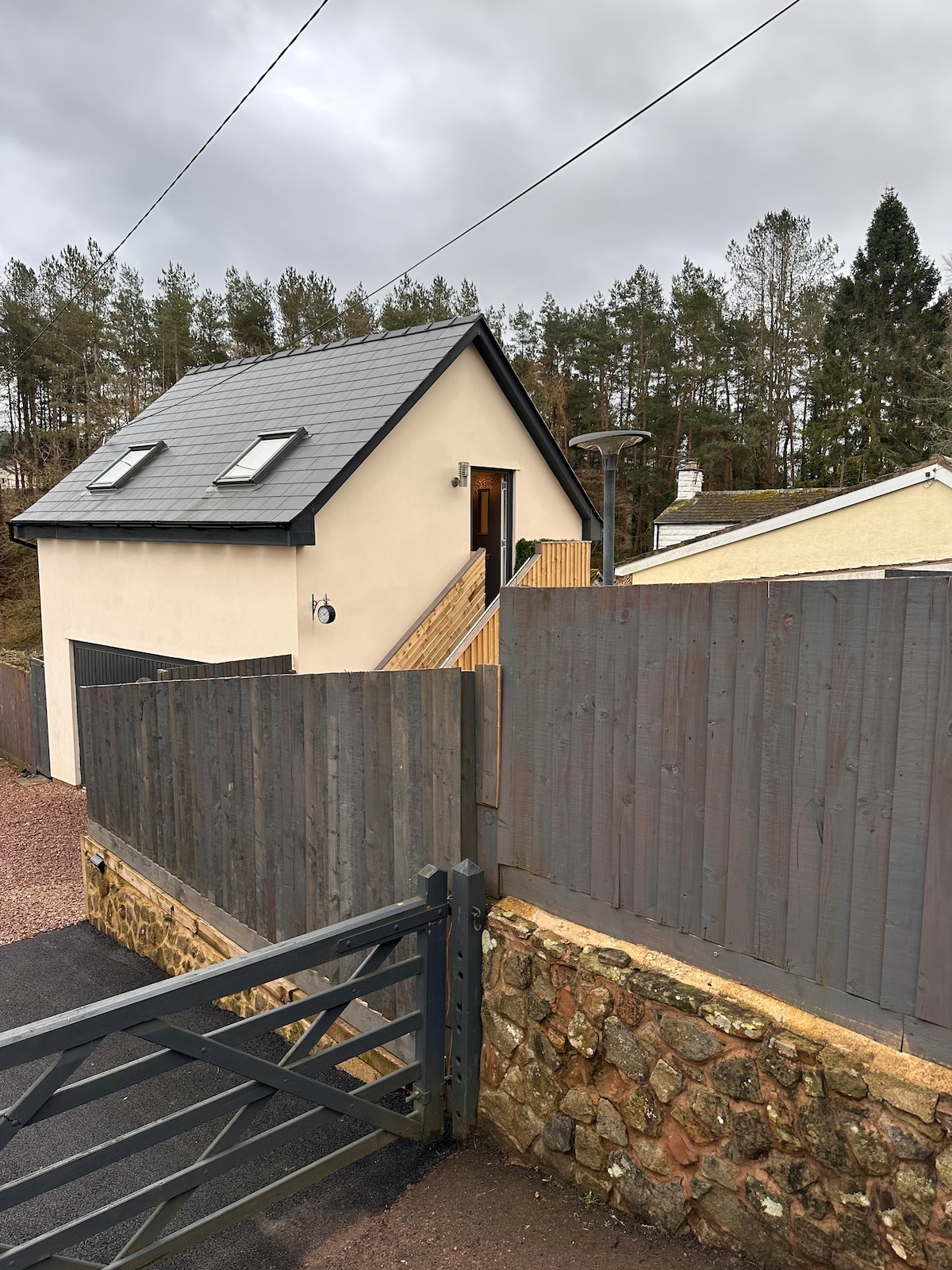 Maple House Lodge is a 1st floor guest annex, accessed via an external staircase. Located in a quiet location on the edge of the village, with rural views and comprising an open plan sitting/dining area, with TV and a well equipped kitchen with hob, oven, sink, fridge, and cooking utensils for our self catering guests. The bedroom has a super king size bed, dressing table, chest of drawers and hanging rail and en-suite shower. Parking on site Guests are welcome to use our Gym