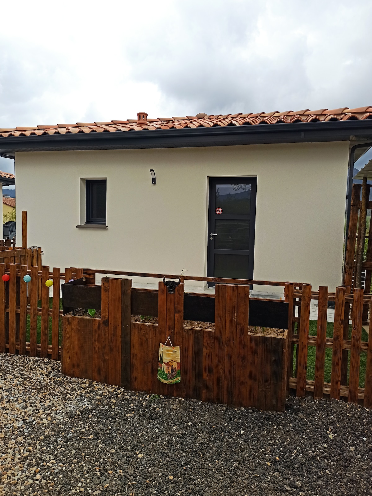 Under our timber-framed house, we rent out a 25m² studio with a private 12m² terrace, a picnic table with a parasol, and an electric plancha. The accommodation was built in 2019. . Enjoy a magnificent view of the valley, the Orb River, and the mountains. Located in the heart of the Haut Languedoc Regional Park, you can experience canyoning, climbing, mountain biking, hiking, and canoeing. Whether by bike or on foot, you can explore the Greenway . Read my guide in the announcement .